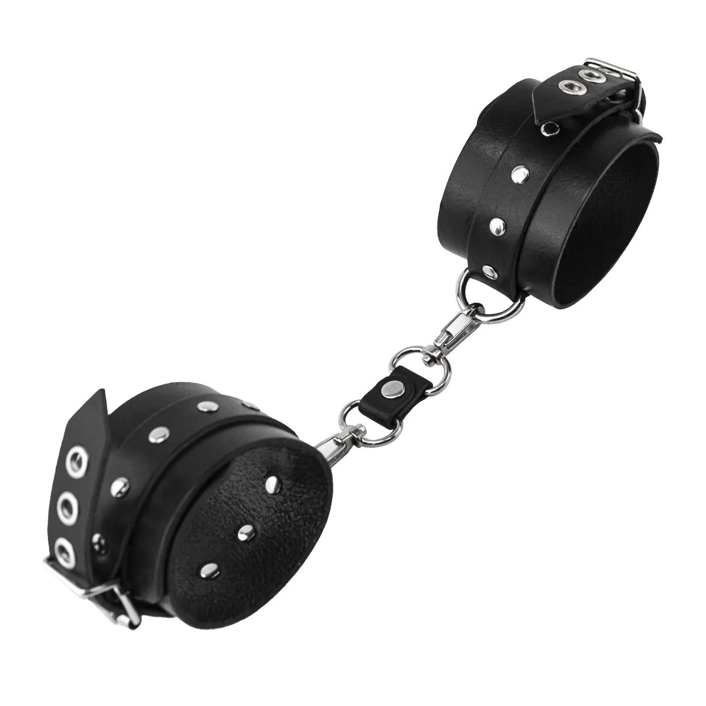 Теперь Вы можете быть уверены, что Ваш пленник не сбежит от Вас, если Вы обездвижите его с помощью этого БДСМ-аксессуара. Черные поножи декорированы металлическими клепками и соединены между собой при помощи цепочки. Ремешки с пряжками позволяют отрегулировать диаметр оков. Привнесите в Ваши интимные отношения немного разнообразия с помощью этого приспособления для сексуальных утех.