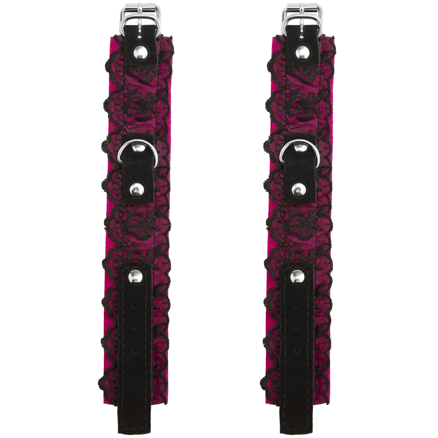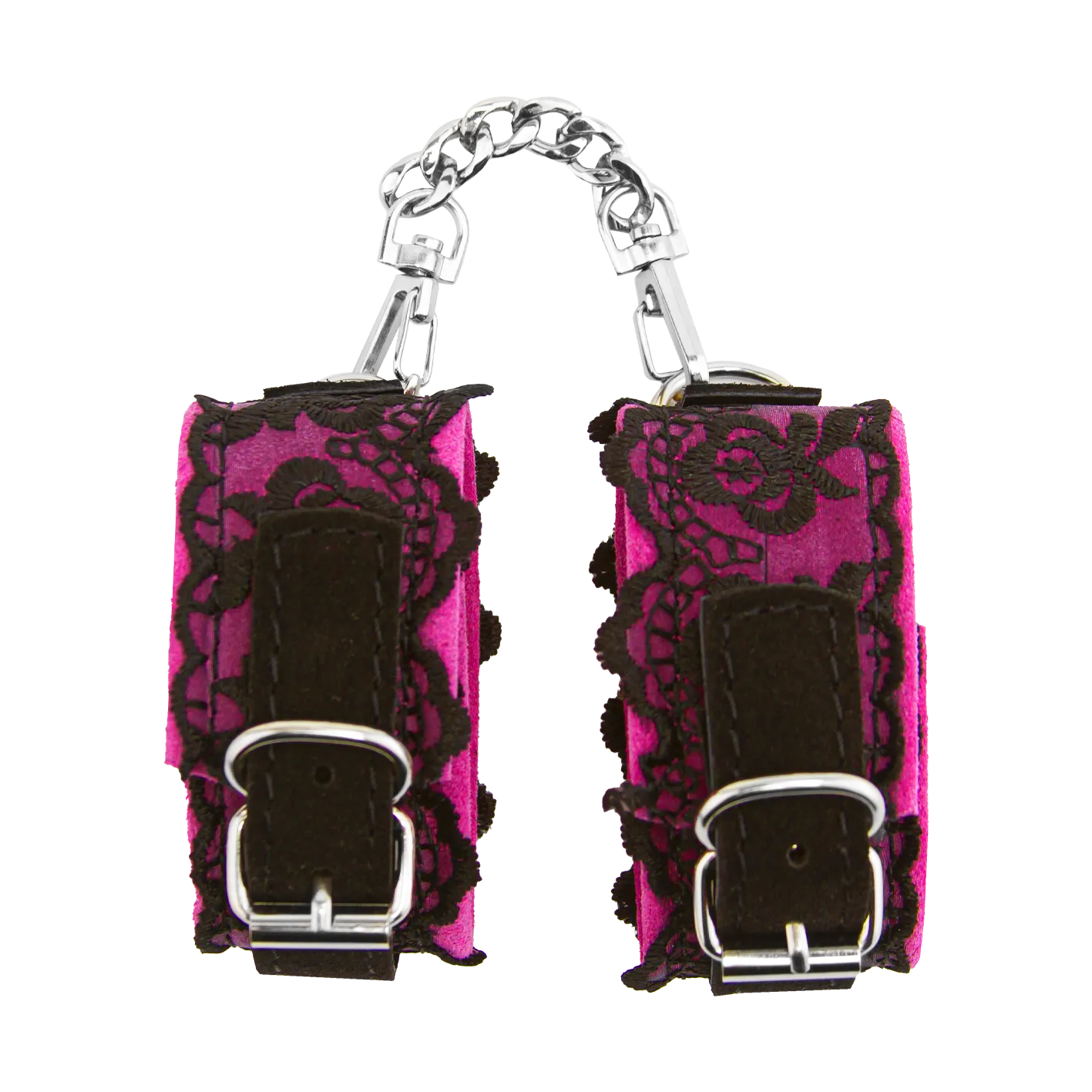 —Наручники замшевые с кружевом на цепочках, фуксия
