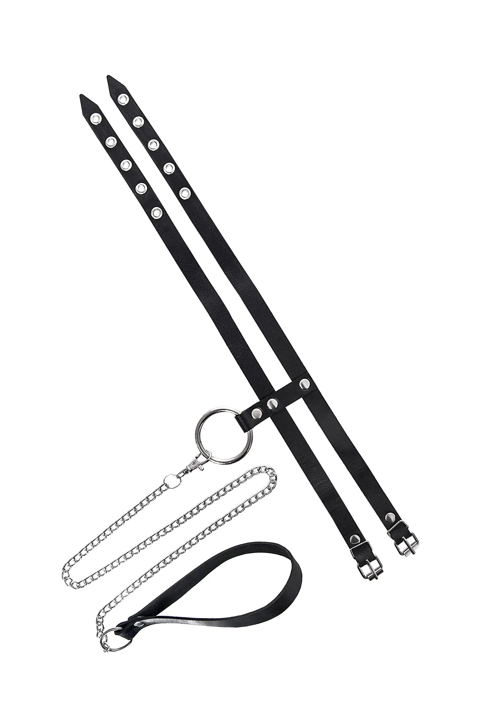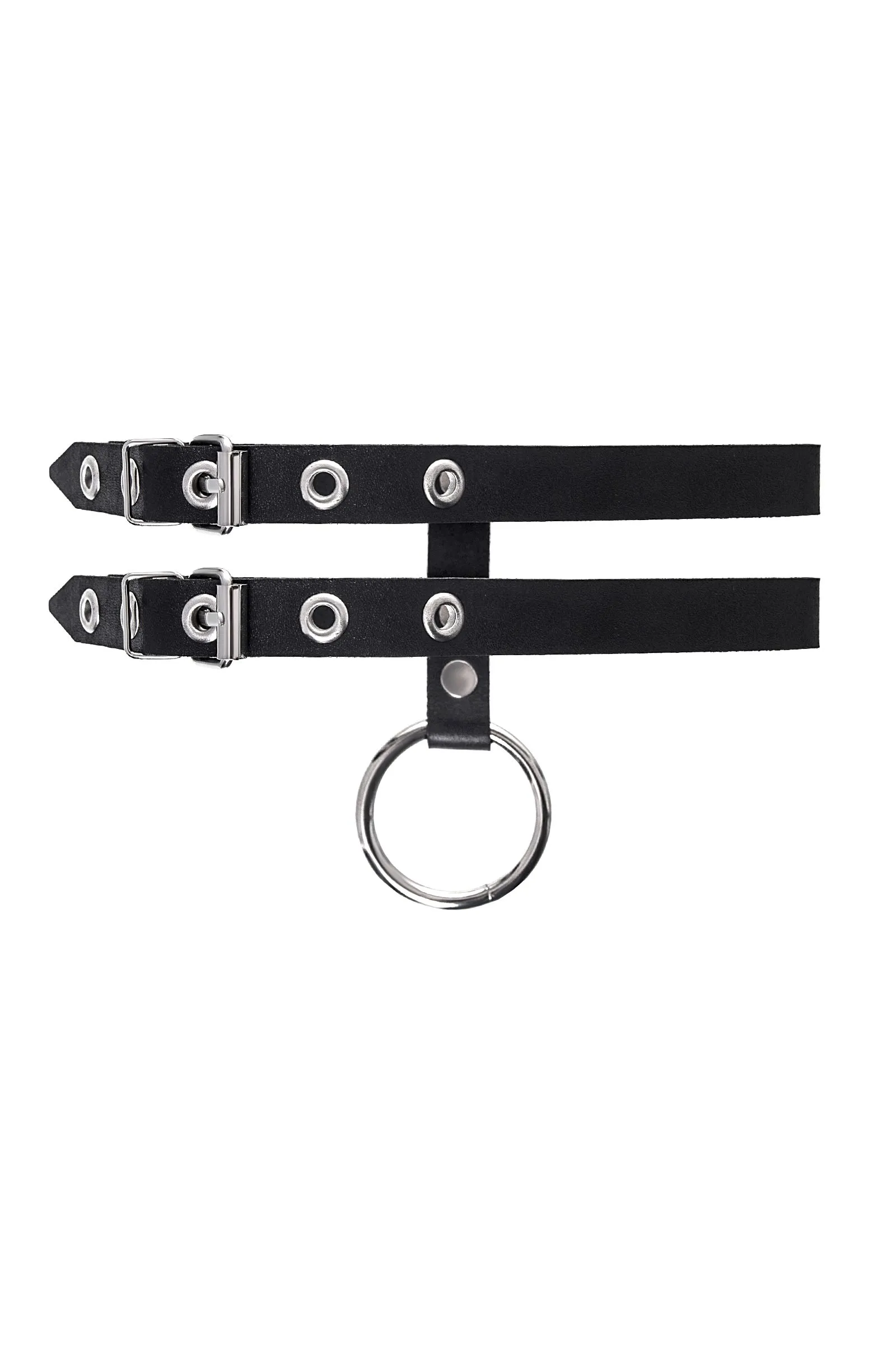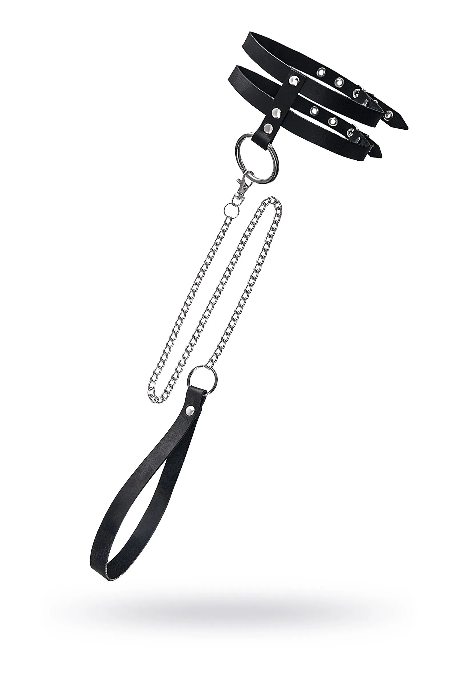 Ошейник Pecado BDSM, из двух ремешков, натуральная кожа, черный