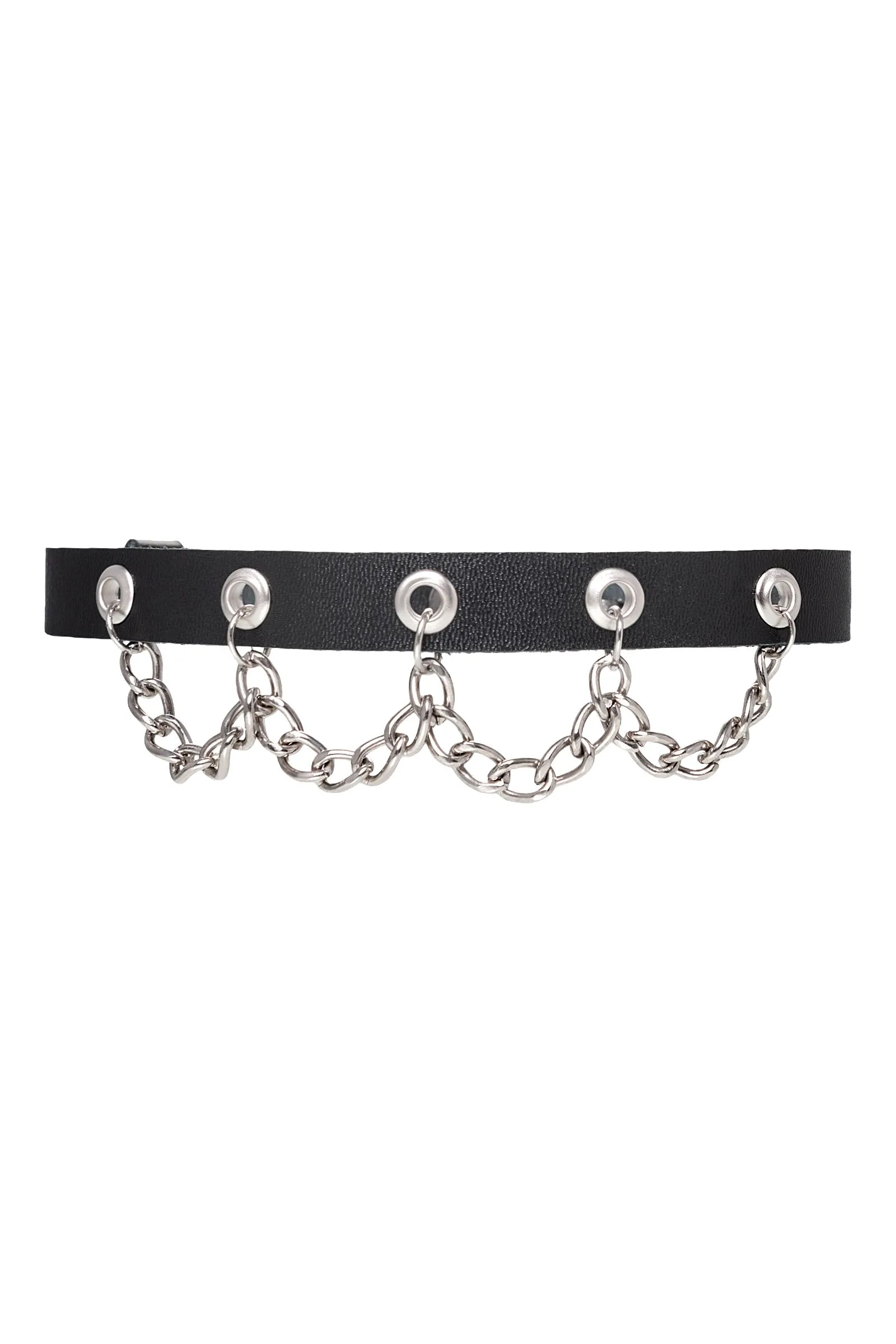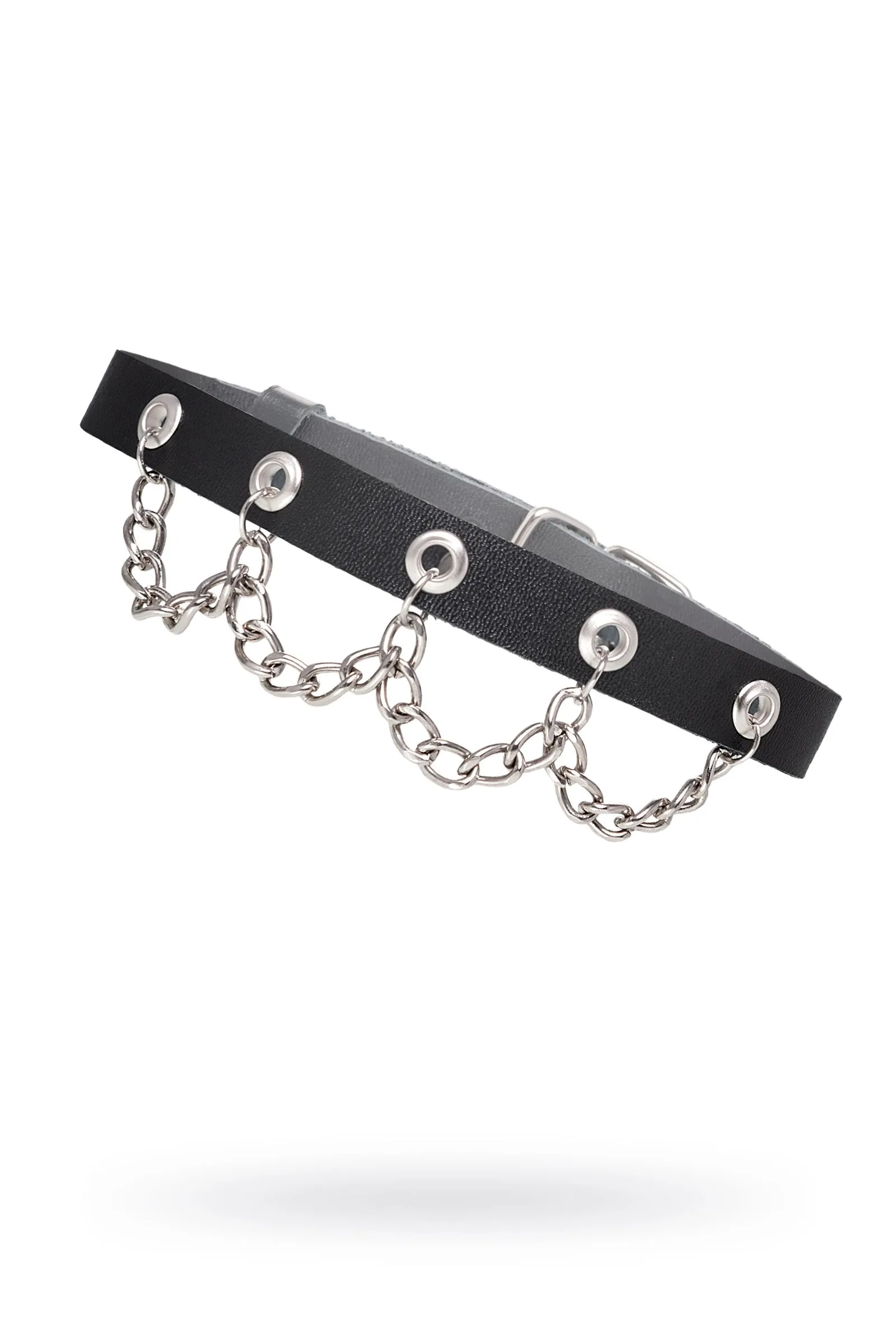 Чокер Pecado BDSM, с цепочкой, натуральная кожа, черный