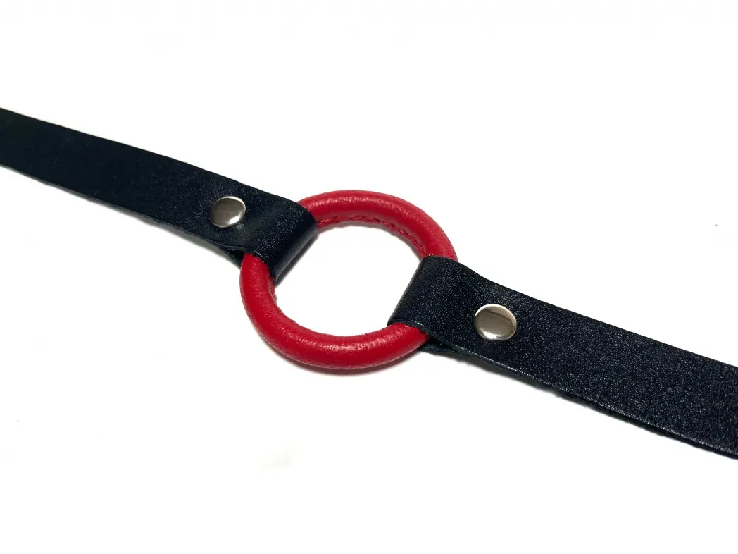 Строгий и надежный кляп, выполненный из натуральной кожи черного цвета. В основании использовано сварное металлическое кольцо диаметром 4,5 см, обтянутое нежной овечьей кожей красного цвета. Ширина ремешков 1,8см, обхват удобно регулируется с помощью металлической пряжки. Такой кляп станет отличным элементом БДСМ игры, функциональным и комфортным в использовании. Материал: натуральная кожа, металл Цвет: черный, красный