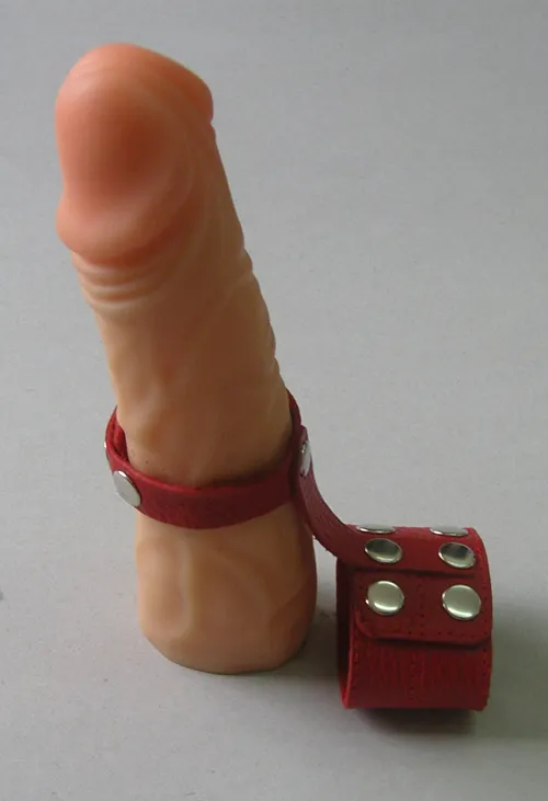 —Поводок красный кожаный на пенис диаметром 10 мм на кнопках 3143-2