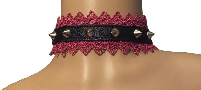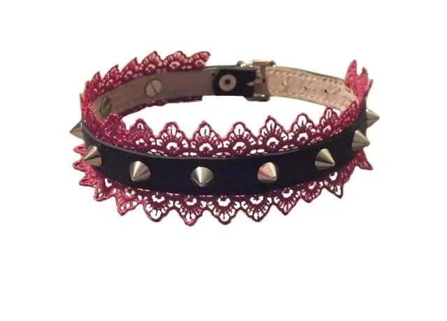 —Ошейник Подиум с цикламеновым кружевом и шипами
