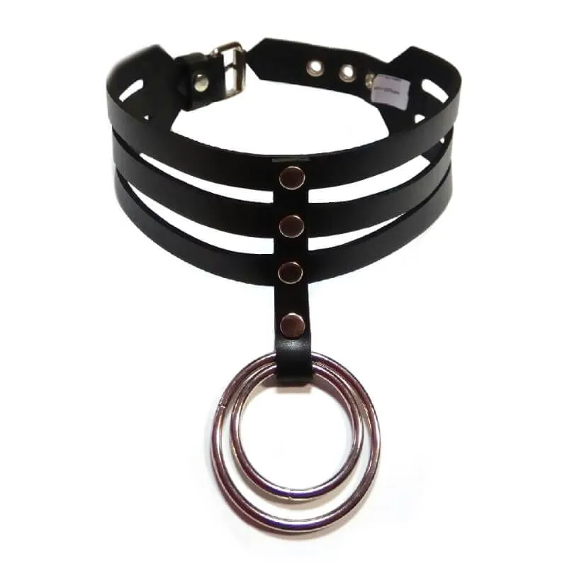 Чокер Fetfox Studio с двумя кольцами и тремя полосками, чёрный