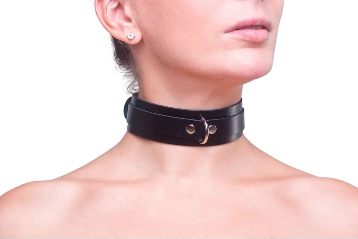 Классический двухслойный ошейник с широкой манжетой и узким ремнем, который удерживает полукольцо для поводка