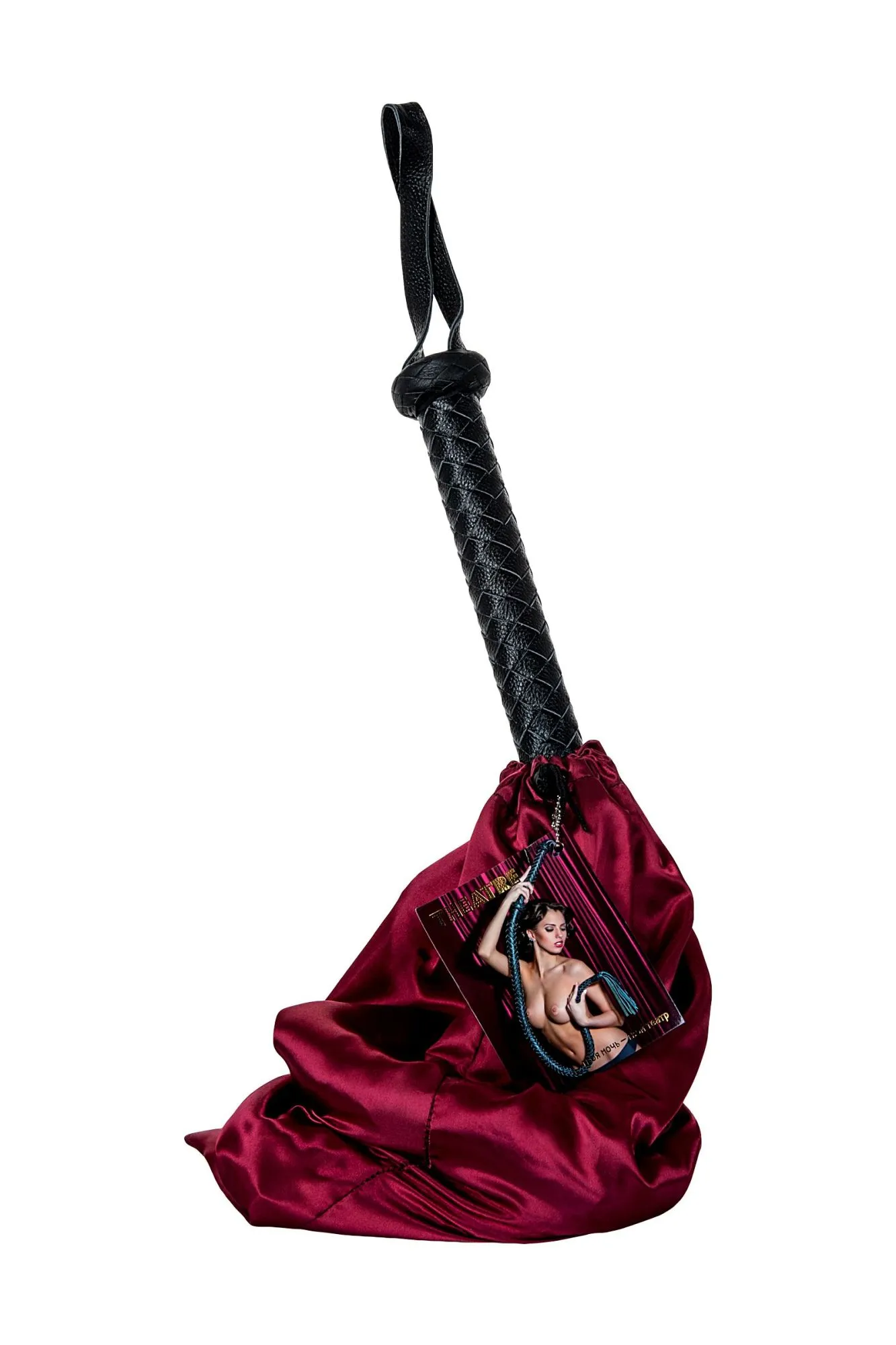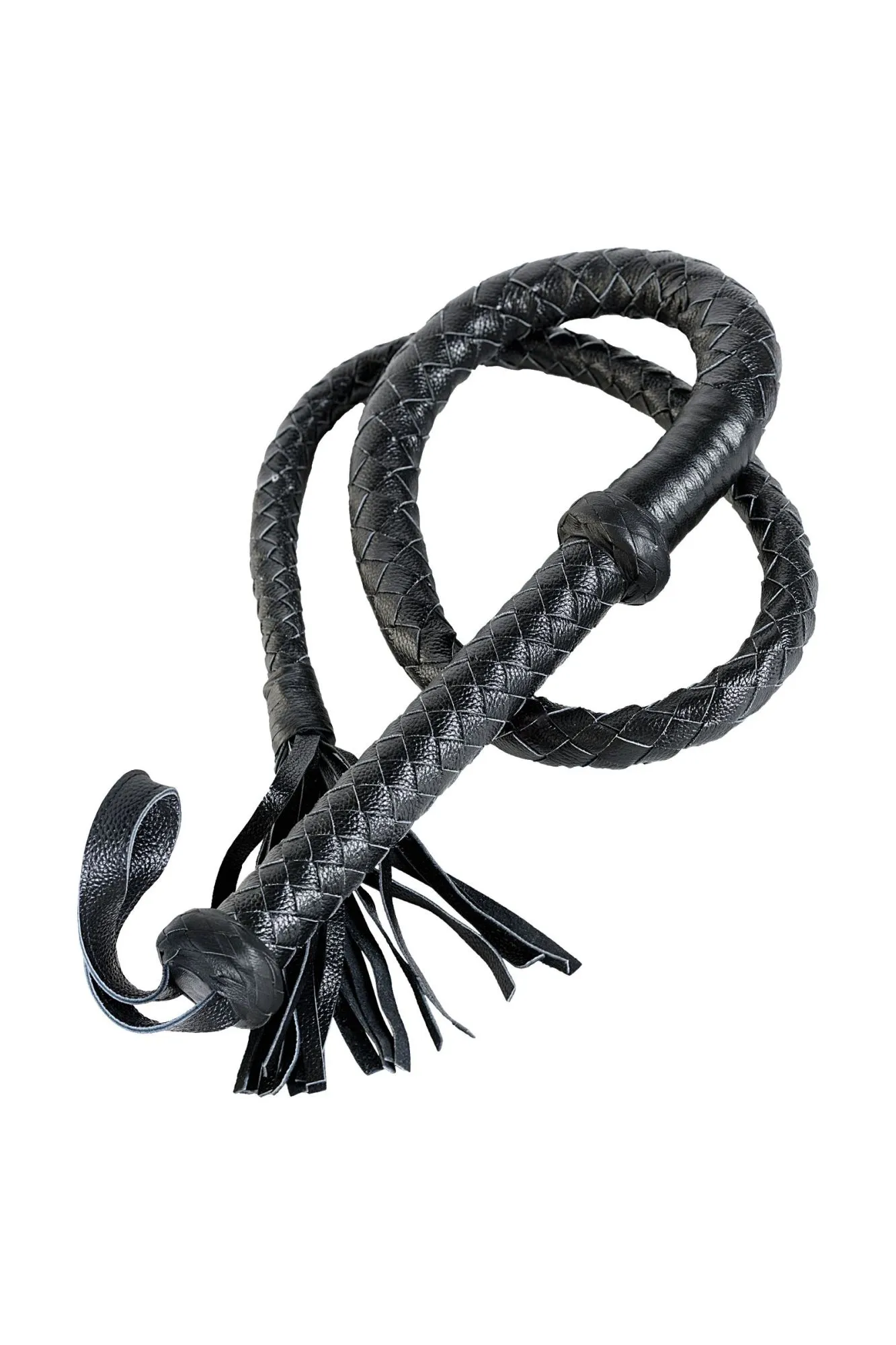 Это кнут — настоящее произведение искусства. Изумительное плетение, натуральная кожа, жёсткая рукоятка 30 см, кожаные хлопушки на конце и длина — 1 м 75 см! Выглядит такой атрибут очень впечатляюще, но порка им требует особого умения, поскольку кнут способен наносить очень сильные удары. Предназначен для точечного воздействия, накатов, охватов.