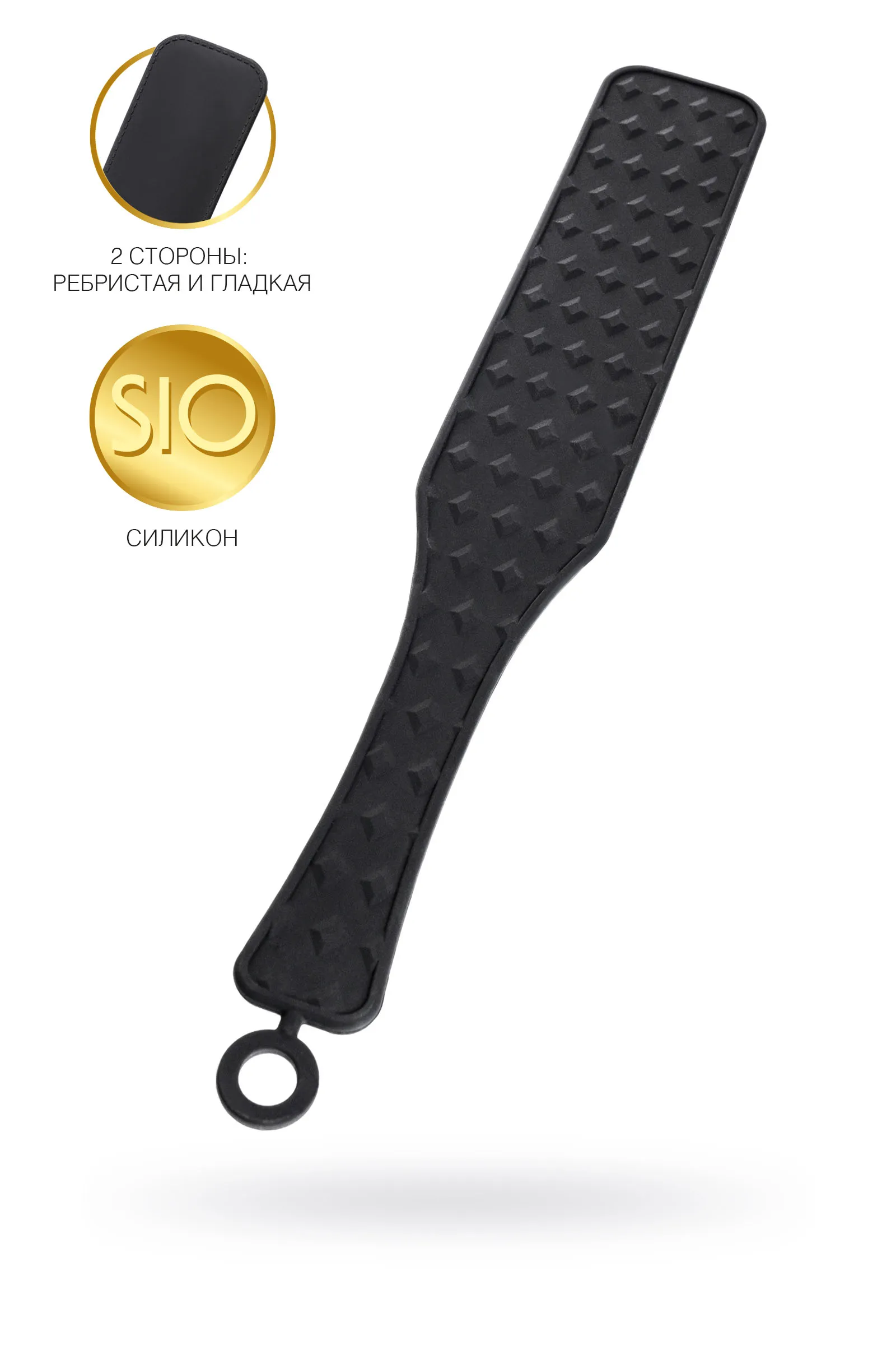 Шлепалка Знаменитый пэддл - аксессуар для наказания, заменяющий ладонь. Шлепки могут быть мягкими и жесткими в зависимости от вашего настроения. Полностью силиконовая шлепалка приятна в использовании для обоих партнеров. С одной стороны она покрыта "бриллиантовым" рельефом и при сильных шлепках оставит на коже соответствующий узор. С другой стороны она абсолютно гладкая и ощущения от наказания будут более мягкими. Общая длина 37,5 см Рабочая длина 21 см Ширина 6,5 см Материал: силикон В фотосессии на модели использованы пэстис Theatre 705006