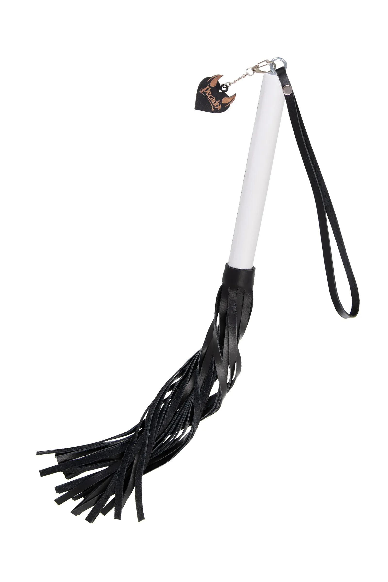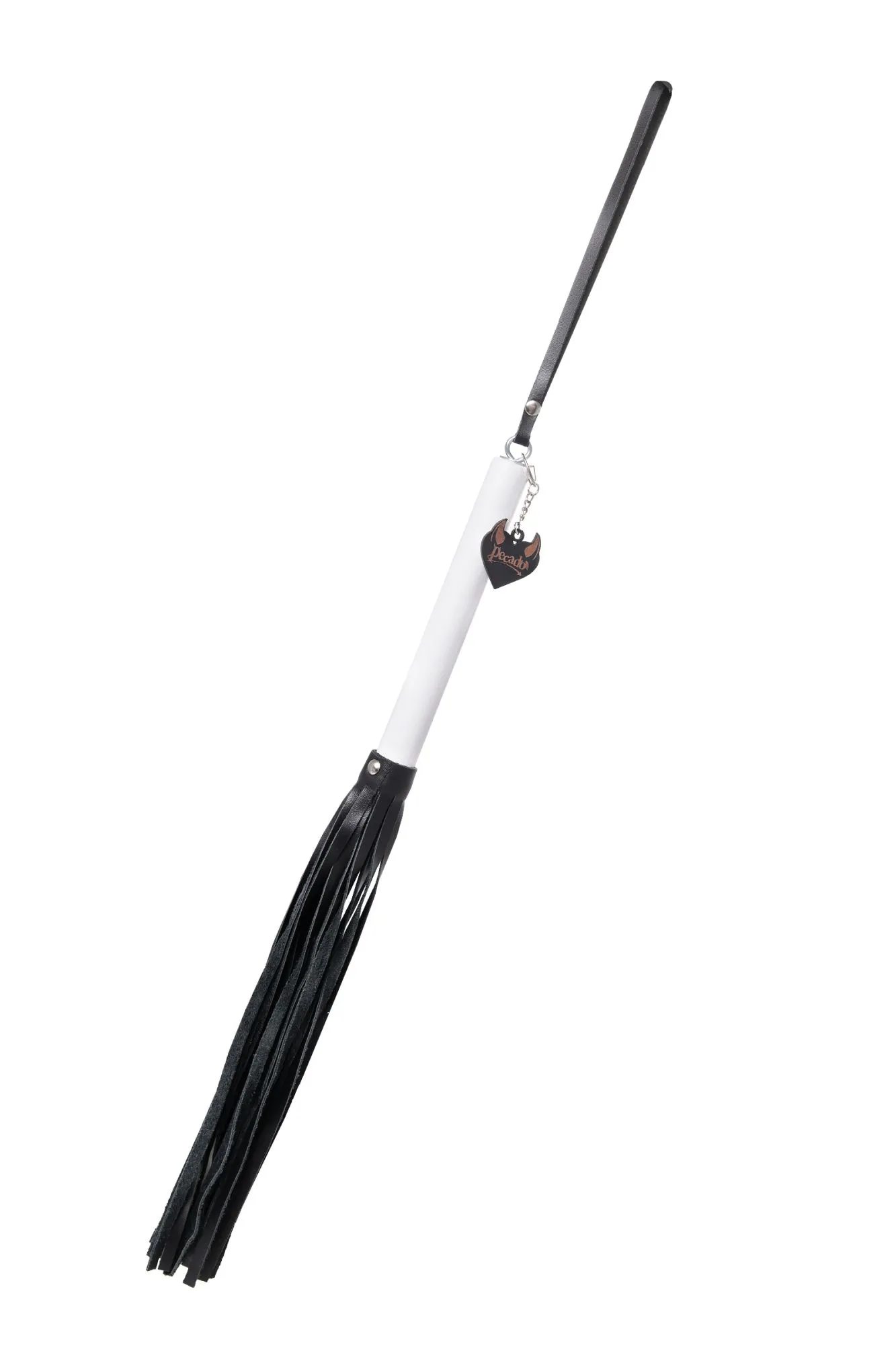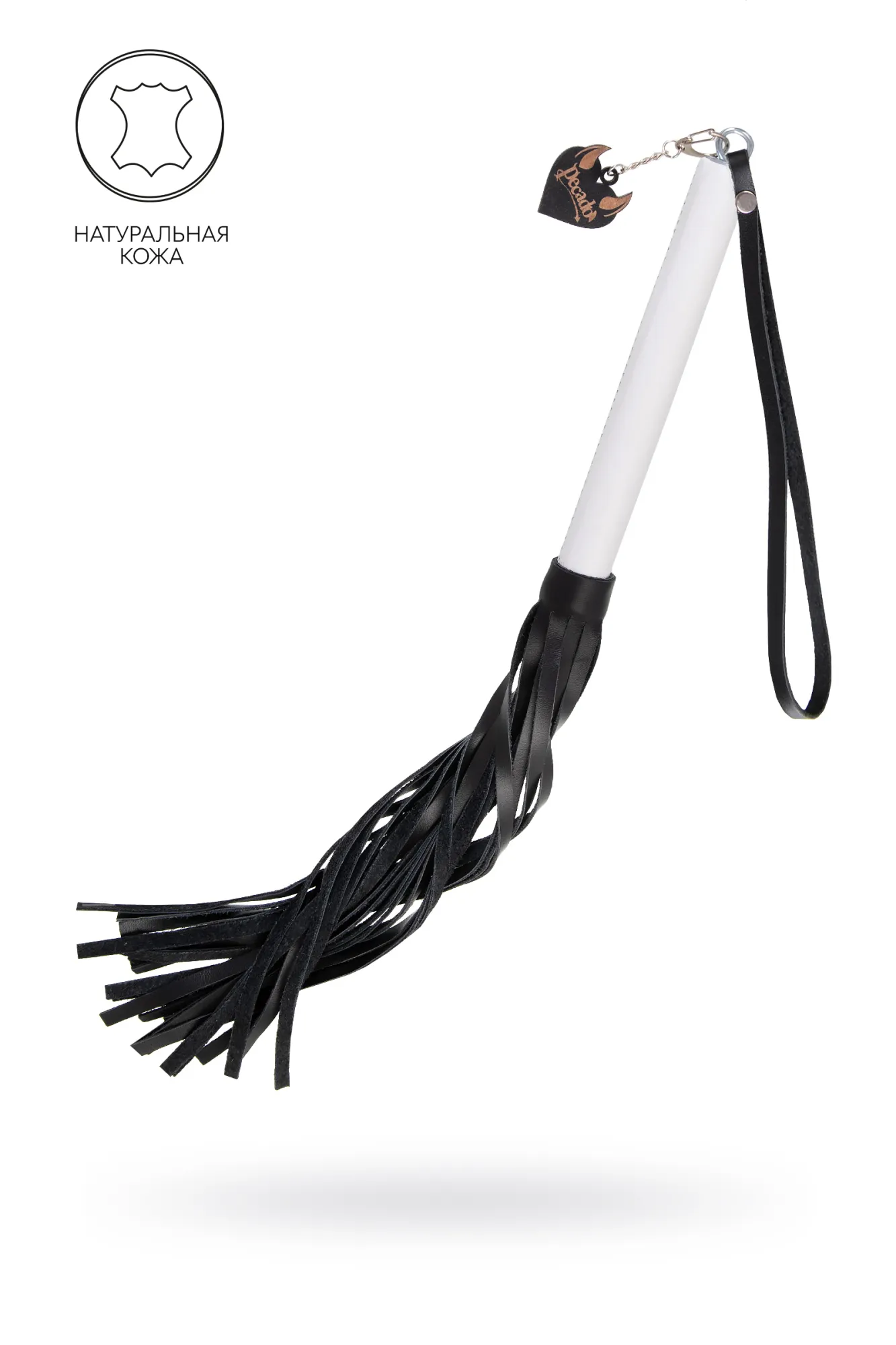 —Плеть Pecado BDSM, белая рукоять, чёрные хлысты, натуральная кожа