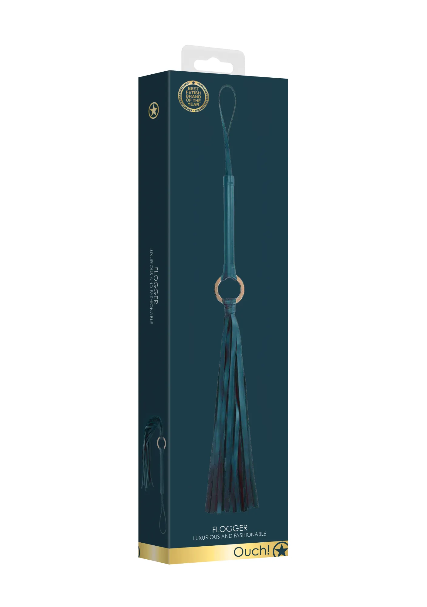 Хлыст Ouch Ouch! - Flogger –Green - универсальный ударный девайс для эротических ролевых игр и практик БДСМ. Флогер относится к мягкому типу. Он состоит из прочной рукояти, множества «хвостов», нарезанных из тонких полос, соединенных между собой оригинальным золотым кольцом и петли для фиксации изделия на запястье (темляк). Хлыст выполнен в прекрасном зеленом цвете.