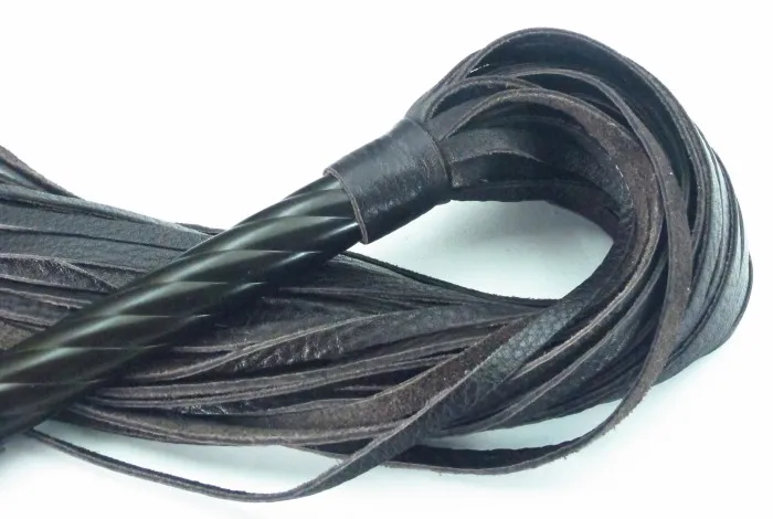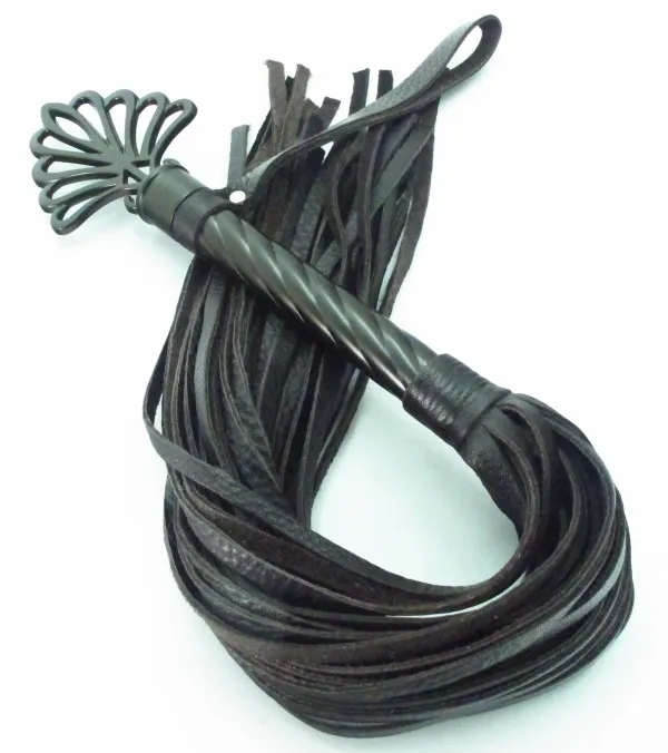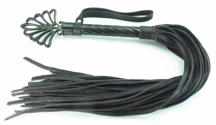 Плеть с никиеливой рукояткой из натуральной кожи. Рукоятка с рельефной поверхностью украшена своеобразной короной, имеет кожаный ремешк-петлю для удобного использования, Длина рукоятки- 25,5см, длина хлыстов - 40 см.
