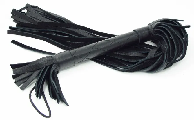 Аккуратная черная плетка, изготовленная из натуральной кожи. Имеет жесткую ручку длиной 16 см, так же покрытую кожей. Имеется петля для удобного использования плети. Длина хлыстов -42 см. Общая длина плети - 65 см.