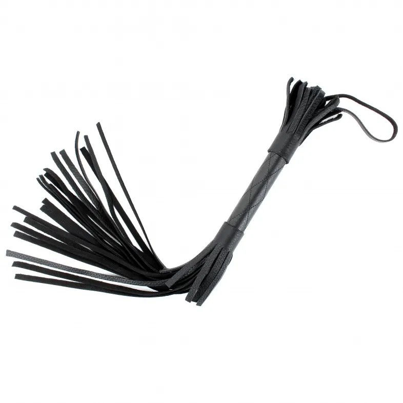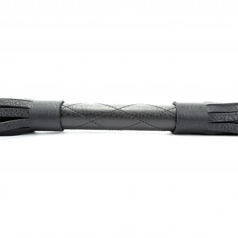Аккуратная черная плетка, изготовленная из натуральной кожи. Имеет жесткую ручку длиной 17 см, так же покрытую кожей. Имеется петля для удобного использования плети. Длина хлыстов - 27 см. Общая длина плети - 51 см.