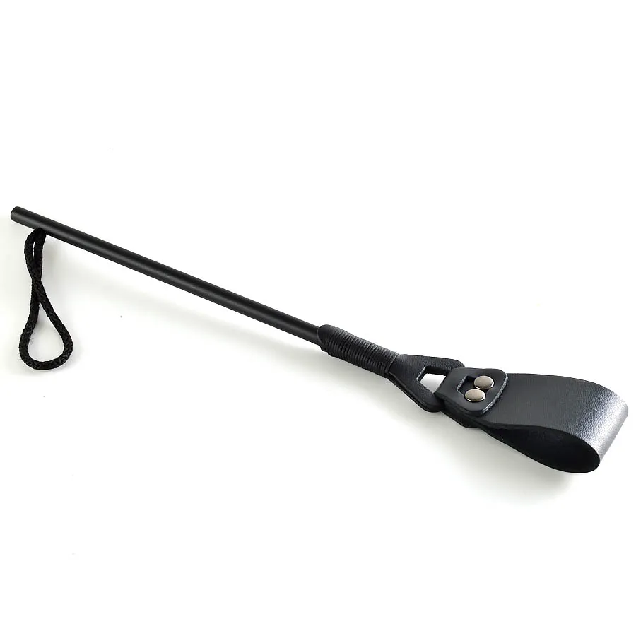 Оригинальный стек Клеопатра для любителей БДСМ-развлечений. Шлепок в виде петли из натуральной кожи и удобная металлическая ручка позволяют использовать его максимально эффективно.  Общая длина стека - 33см.