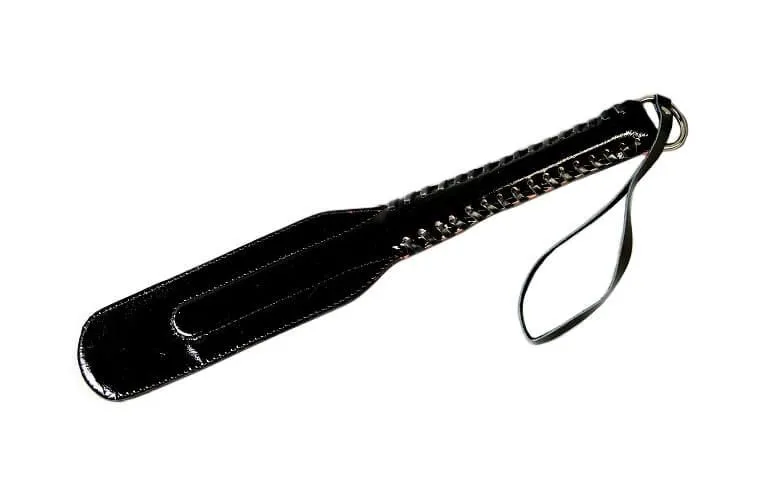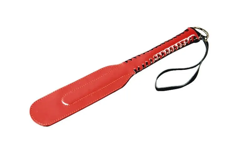 Этот уникальный аксессуар для развлечений с элементами БДСМ представляет собой черно-красную кожаную хлопалку с жесткой ручкой. Если Вы предпочитаете ощущения погорячее, то этот атрибут Вам непременно пригодится во время Ваших любовных игр. Внутри хлопалки есть пружинящая вставка из полимерного материала, которая придает ей гибкость. Ее можно использовать как для дразнящих поглаживаний по коже, так и для более ощутимых ударов по ягодицам и верхним мышцам внутренней стороны бедра. Не рекомендуется наносить хлопушкой удары ребром.