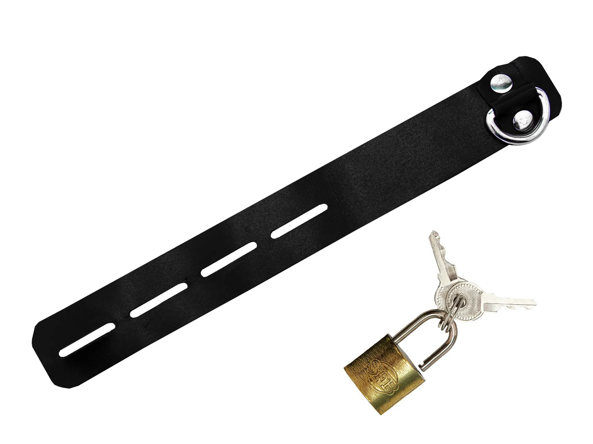 Этот интимный аксессуар от компании Подиум особенно хорошо подойдет для тех мужчин, которые любят жесткие интимные игры в стиле БДСМ. Сбруя представляет собой кожаный ремешок черного цвета, который регулируется по длине и фиксируется при помощи маленького навесного замочка. Два ключа есть в комплекте. Ее можно зафиксировать просто у основания пениса или одновременно вокруг мошонки и пениса, что позволит поддержать эрекцию более длительное время. Благодаря такому нехитрому аксессуару мужчина будет полностью в Вашей власти и не сможет сопротивляться Вашей воле.