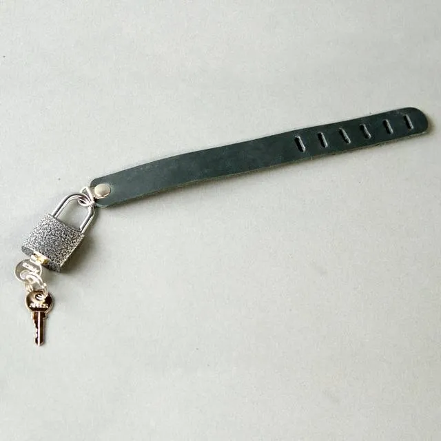Выполнена из натуральной кожи. Размер регулируется, застёгивается на замочек с ключом.