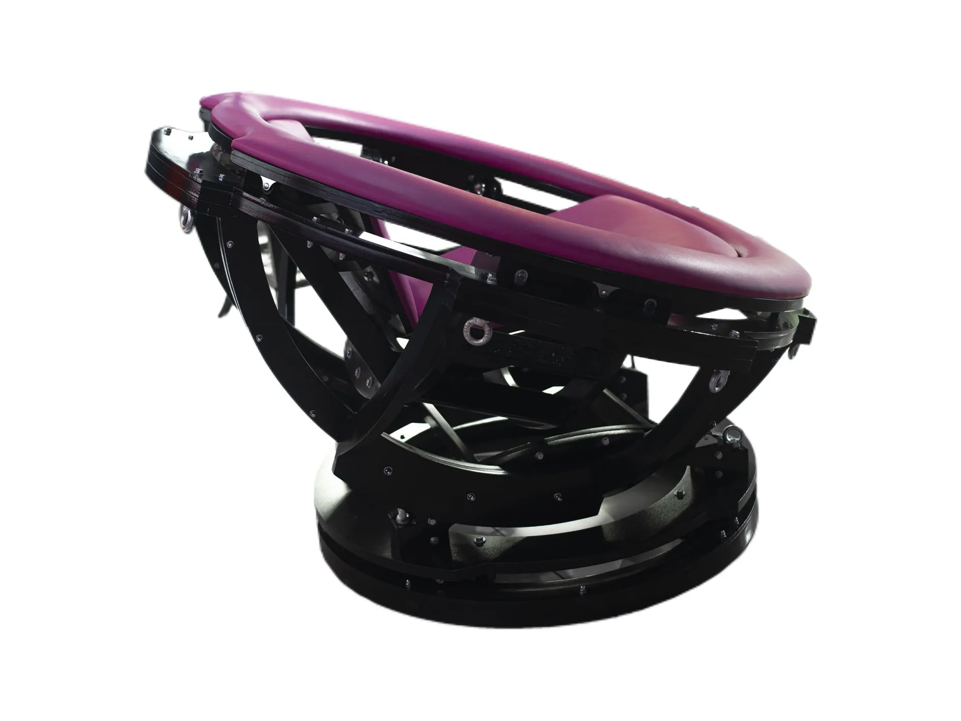 Свободное вращение в трех плоскостях с возможностью фиксации в одном положении. Сидение, спинка и кольцевой упор обиты мягкими подложками с высококачественным пенополиуретаном, обшитыми легко моющейся гипоаллергенной искусственной или натуральной кожей.