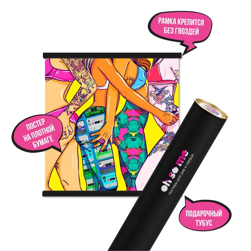 • Постер в подарочном тубусе и с клейкими лентами, которые не повреждают стену при удалении.