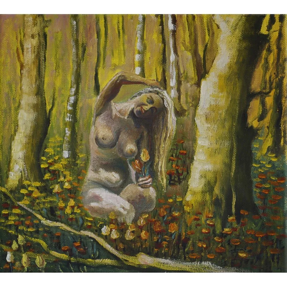 —Картина Козулина Наталья "В цветнике. Виктория" холст/масло 41.5х45 1999 Россия