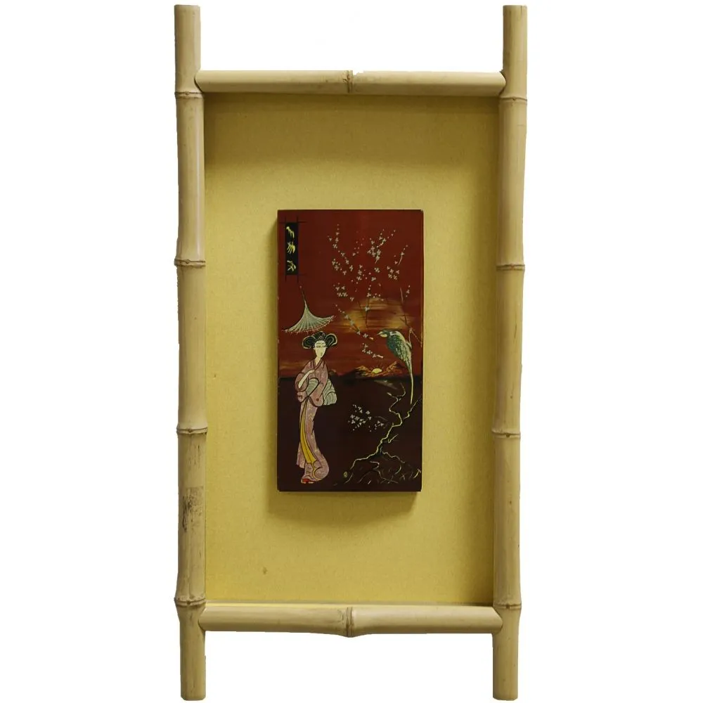 —Картина ЯПОНСКАЯ МИНИАТЮРА "Прогулка Вдвом Она" деревомасло в бамбуковой рамке 12х22 Россия