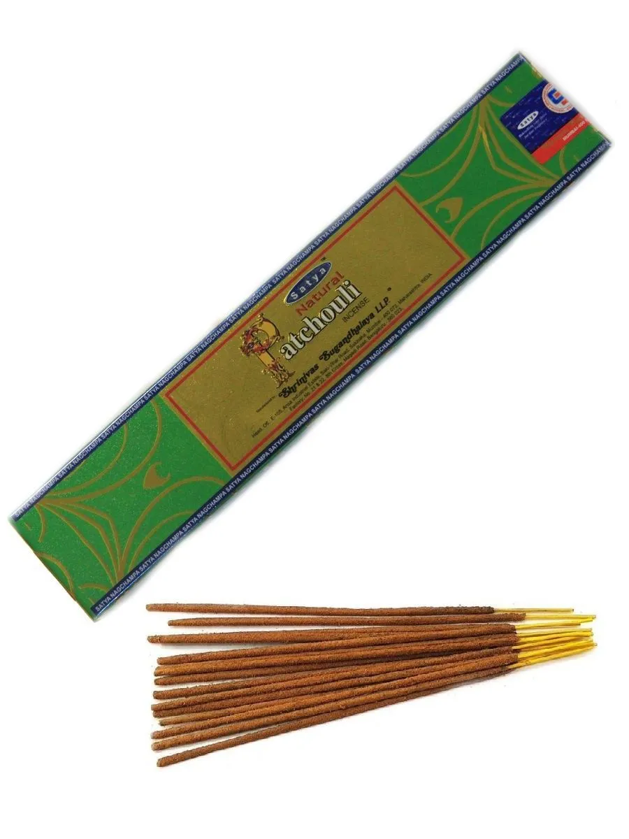 Благовоние «Natural PATCHOULI» (Пачули) от одного из самых известных индийских производителей - «Satya» имеет в своей основе порошок и эфирное масло пачули. Обладает совершенно неповторимым и очень стойким ароматом — чувственным, глубоким, с заметными терпкими и горькими нотками.