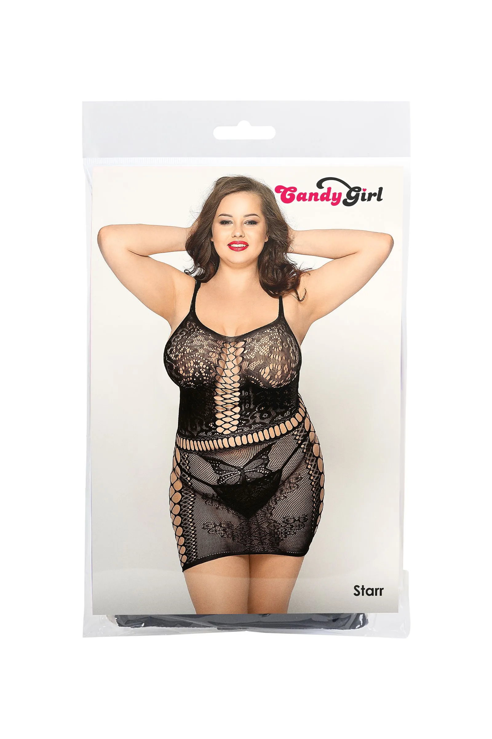 —Платье-сетка и стринги Candy Girl Starr черные, 2XL