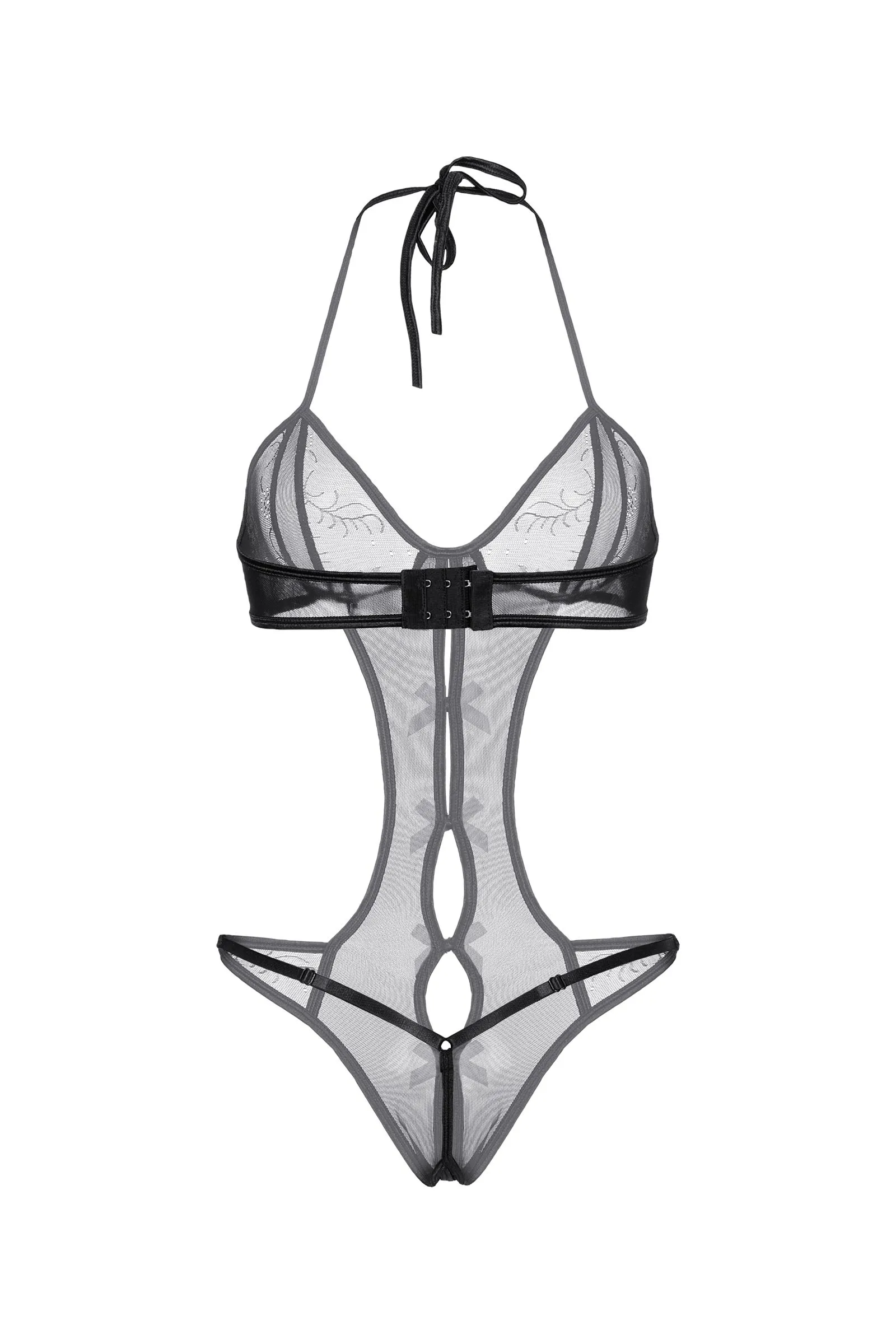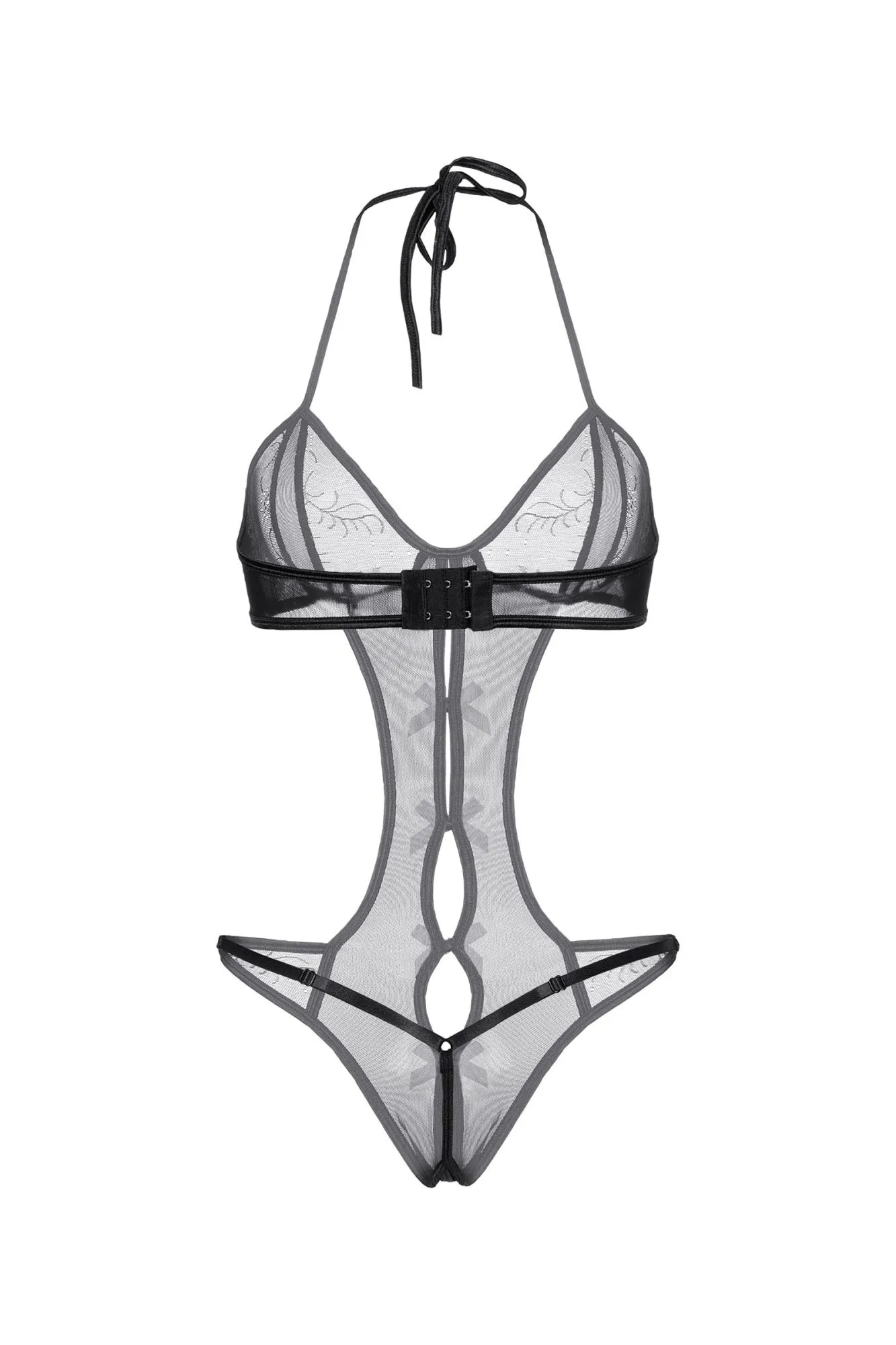 Соблазнительное мягкое боди-монокини Vegas от Candy Girl® - идеальный выбор для жаркой ночи. Боди выполнено из эластичной сетки с кружевными вставками и удачно создает эффект обнаженного тела благодаря большому количеству открытых участков. Лиф соединяется с трусиками полоской ткани, которая зрительно вытягивает силуэт. Пикантный продольный вырез дополнен сатиновыми бантиками до самых интимных мест. Завязки на шее, тройная застежка "крюк-петля" сзади и регулируемые боковые перемычки на бедрах обеспечивают идеальную посадку по фигуре.