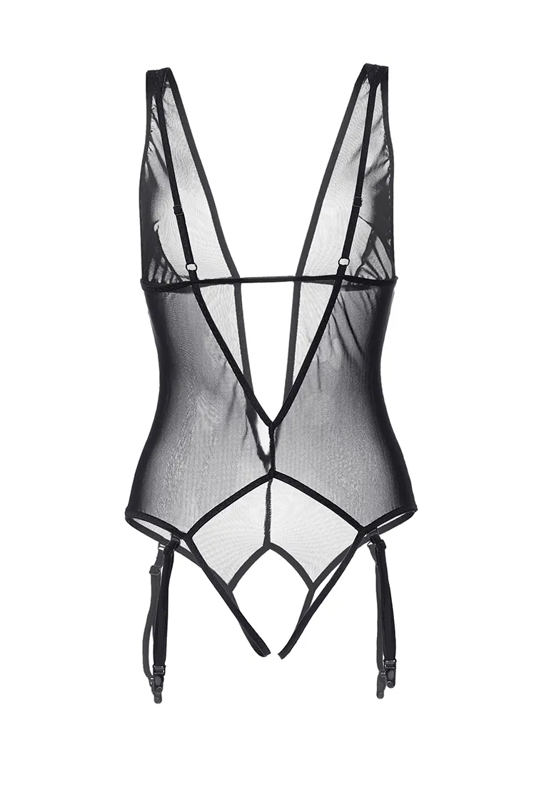 Линия провокационного эротического белья WANAME® Apparel — для женщин, которые достойны наслаждения и не скрывают этого. Эротическое боди с глубоким декольте и пажами для чулок «Экзи́лити» (англ. Exility — «Утонченность») из тонкой прозрачной эластичной сетки эффектно облегает фигуру. Ощущается совсем невесомым, не сковывает движений, но визуально меняет силуэт. Шелковистая поверхность материала дарит приятные ощущения при прикосновении. А современные элементы дизайна боди тешат женское самолюбие. Глубокое декольте акцентирует внимание на нежной коже бюста и дополняет образ вертикальными линиями. Вытачки в районе груди, горизонтальная отделка и регулируемые бретели обеспечивают идеальную посадку. Пажи спереди и сзади легко отстегиваются и дают возможность изменить свой образ в считанные секунды. Открытая спина, обширный эротический доступ — важные детали чувственного образа. Белье Waname® Apparel эксклюзивно, разработано и произведено в России с учетом предпочтений российских покупательниц. *Чулки в комплект не входят.