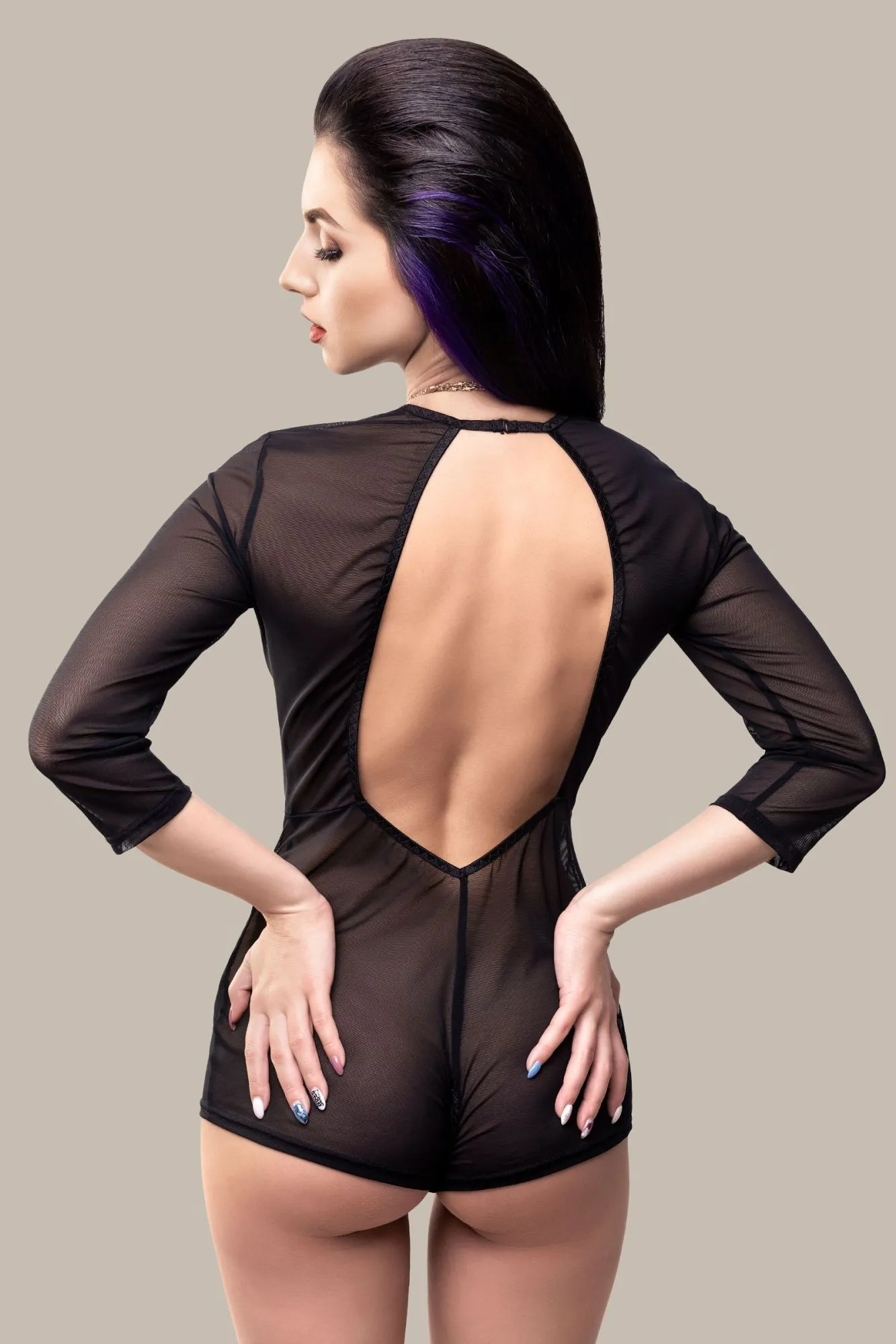 Линия провокационного эротического белья WANAME® Apparel – для женщин, которые хотят наслаждения и не скрывают этого. Эротический комбинезон «При́сио́сити» (англ. Preciosity – «Изысканность») из тонкой прозрачной эластичной сетки облегает фигуру, ощущается невесомым, не сковывает движений, но визуально меняет силуэт. Шелковистая поверхность материала дарит приятные ощущения при прикосновении. Современные элементы дизайна тешат женское самолюбие. Деликатные вертикальные швы акцентируют внимание на плавных изгибах тела и создают силуэтную посадку. Горизонтальный шов визуально подчеркивает талию. Обтягивающие рукава добавляют фигуре грациозности. Застежка на шее, открытая спина и эротический доступ подчеркивают чувственный образ. Модели белья Waname® Apparel эксклюзивны, разработаны и произведены в России с учетом предпочтений российских покупательниц.