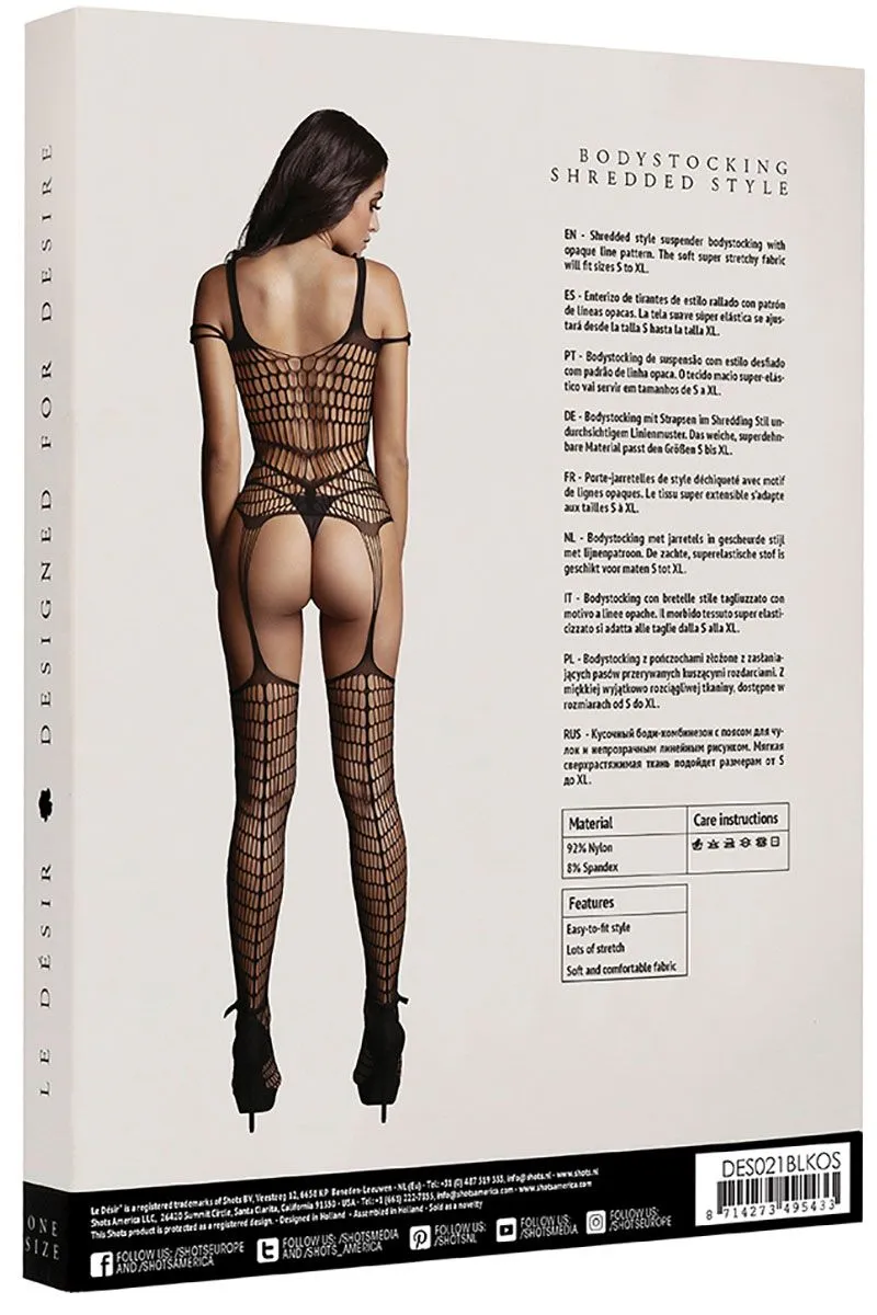 Shredded Bodystocking - боди-комбинезон с бретельками и имитацией чулок. Дизайн в виде крупной сетки дополнен контрастными полупрозрачными линиями, подчеркивающими изгибы тела.