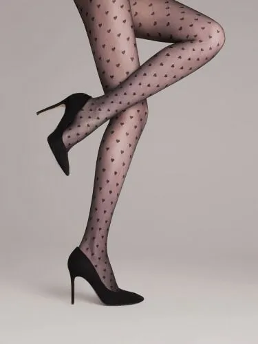 Игривые фантазийные колготки LOVELY черного цвета в маленькое сердечко от компании Mirey. Необычный принт и качественные материалы делают их настоящей изюминкой образа.
