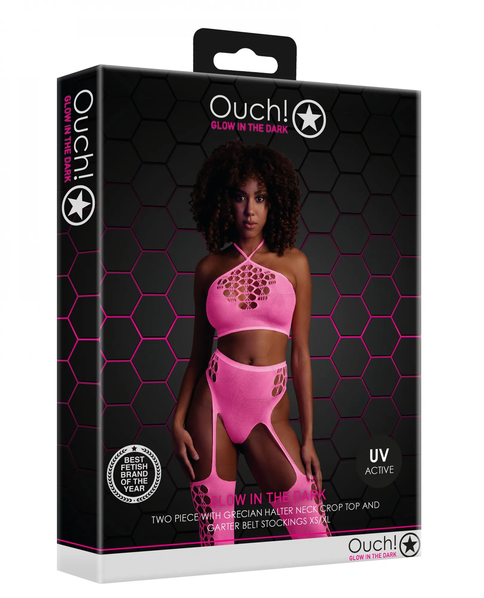Неон Комплект из топа с трусиками и чулками - XS/XL