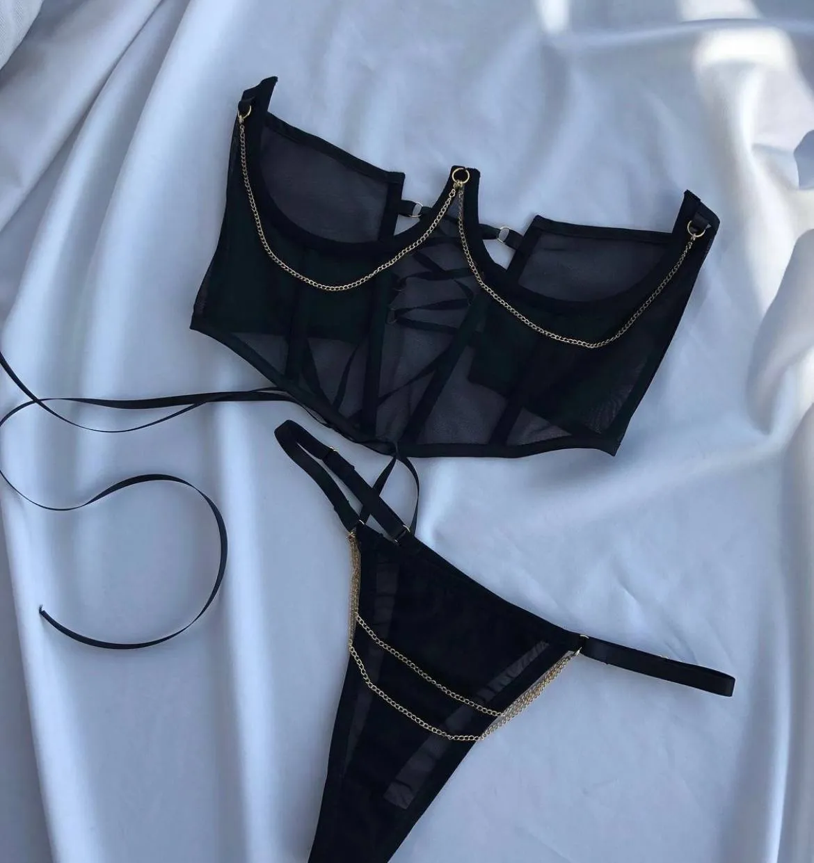 —Корсет со съемной цепочкой, черный