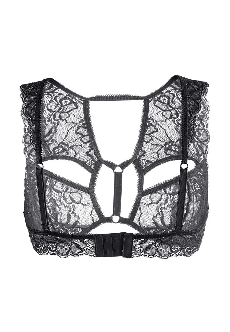Мягкий кружевной топ Erolanta® Marisa с декоративными вырезами, стрепами и перемычками. Свободный ажурный край. Регулируемые бретели. Многорядная застежка на спине. *Допускается замена кружева на аналогичное. На видео бралетт Erolanta® Marisa дополнен идеально сочетающимся трусиками Erolanta® Julia.