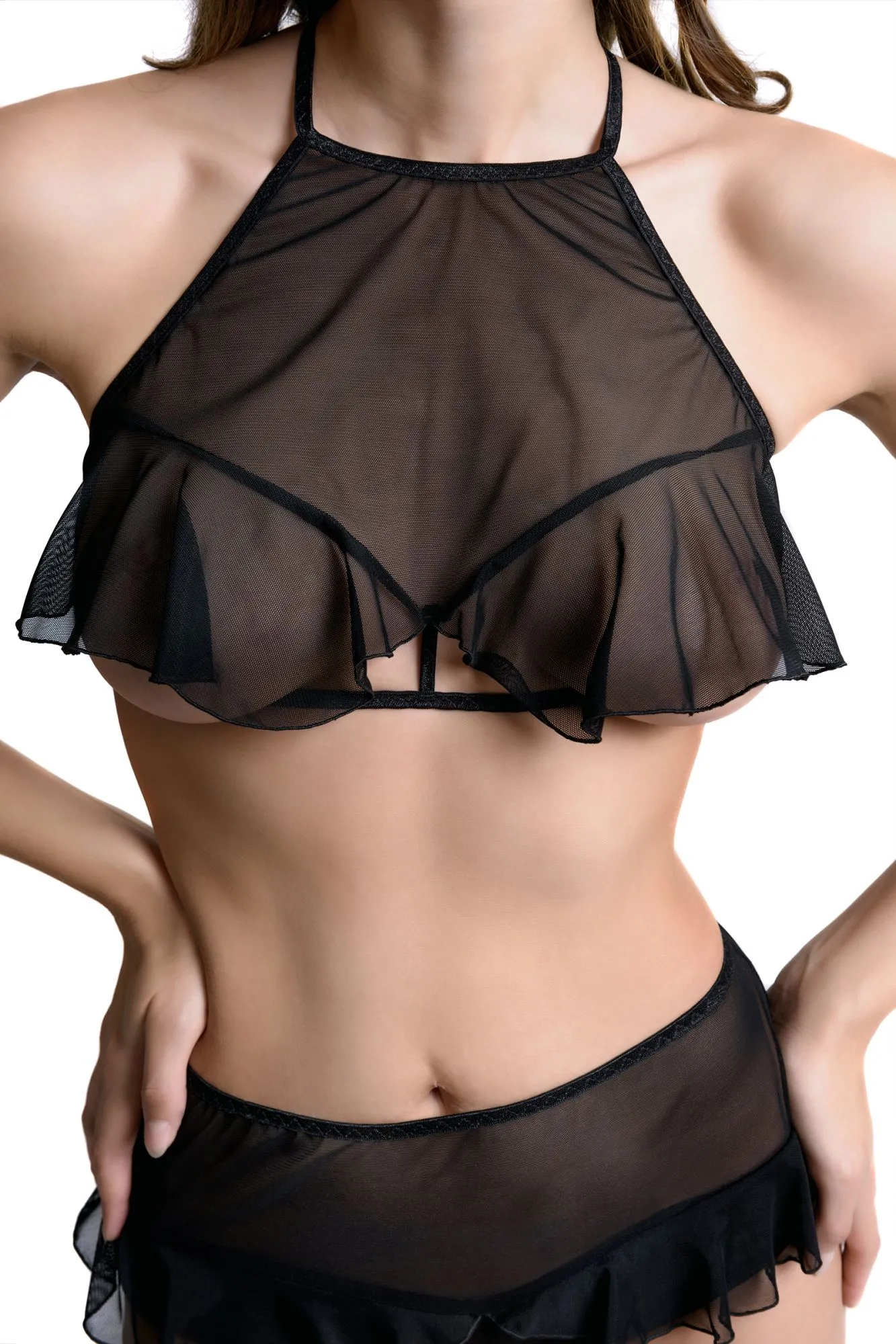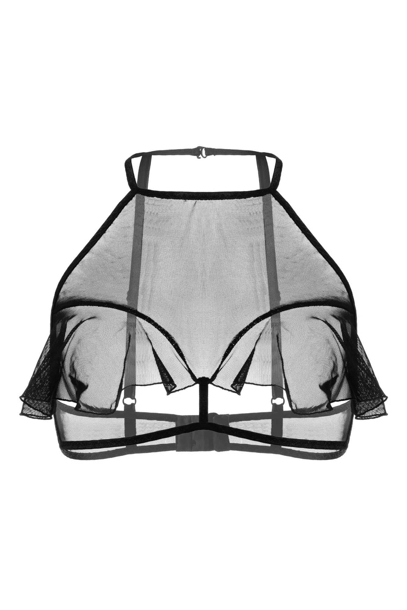 Откровенный бралетт Karen от Erolanta® не оставит вашего мужчину равнодушным. Мягкий топ из невесомой эластичной сетки приковывает взгляд к линии декольте. Очаровательные воланы игриво открывают доступ к груди. А тонкие регулируемые бретели, застежка на шее и многорядная застежка на спине обеспечивают комфортную посадку, которая позволит чувствовать себя невероятно уверенно. Заставьте сердце любимого биться чаще с бралетт Karen от Erolanta®. На видео бралетт Erolanta® Karen дополнен идеально сочетающимися трусиками Erolanta® Lana.