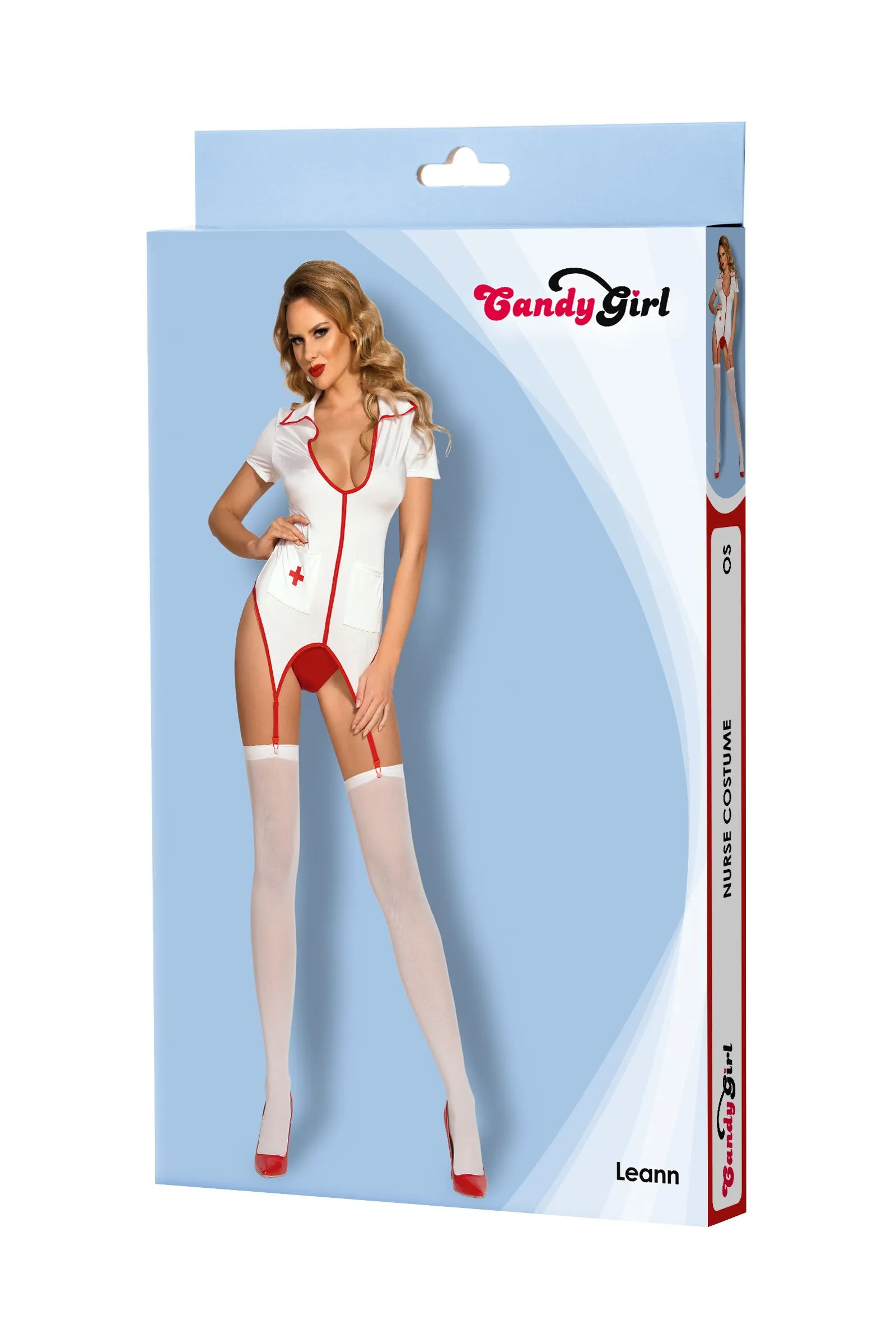 —Костюм медсестры Candy Girl Leann (топ, стринги, чулки), бело-красный, OS