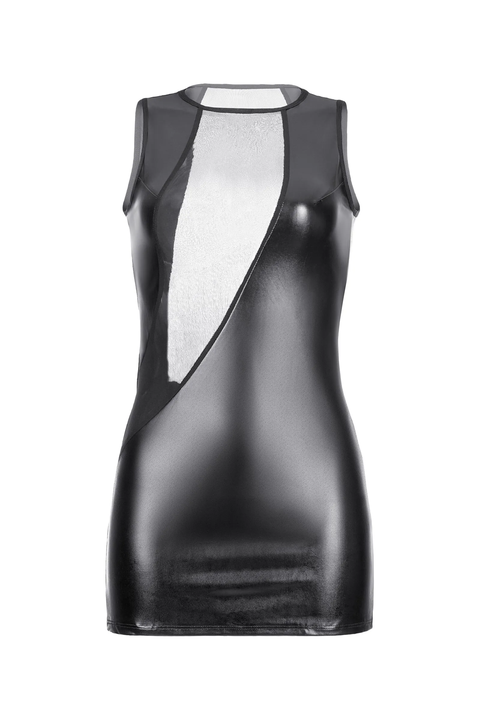 Облегающее wetlook платье Jilian от Candy Girl® подчеркнет естественные изгибы тела, а асимметричная ставка прозрачной сетки пикантно продемонстрирует декольте и спину. Наряд придется по вкусу любительницам современных смелых образов.