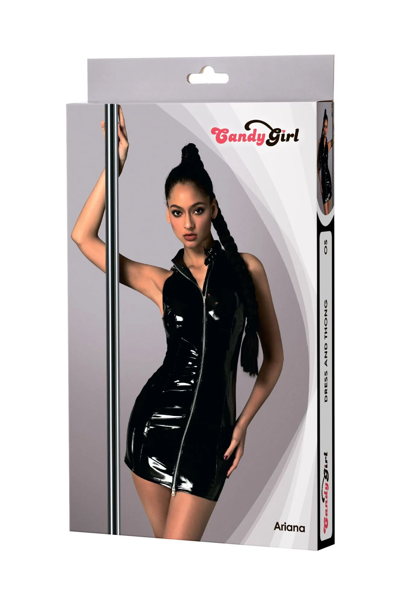 —Платье лаковое на молнии и стринги Candy Girl Ariana черные, OS