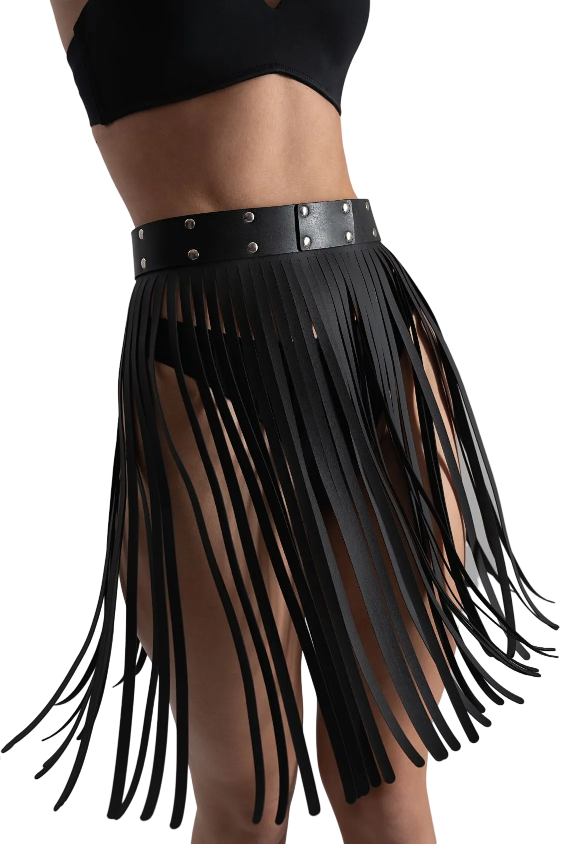 Юбка придаст Вашему образу сексуальности и соблазнительности, ведь при каждом Вашем шаге бахрома из кожи будет волнующе обнажать Ваши ножки. Ее можно носить как поверх шорт, другой юбки или боди для придания образу большей выразительности и особого шарма или же на голое тело во время ролевых игр с партнером. Экспериментируйте, пробуя сочетать юбку с различными аксессуарами и вещами из своего гардероба для создания своего уникального стиля.