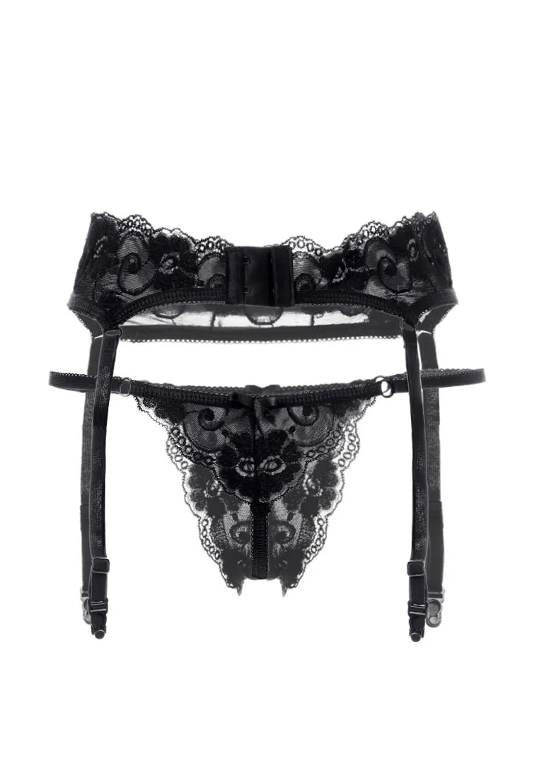 —Комплект Erolanta Tatyana: пояс для чулок и стринги, черный 42-44