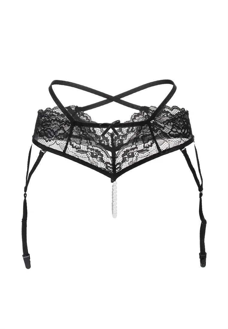 Эротические трусики-пояс с жемчужной нитью Erolanta Wendy кружевные, черный (46-48) в пакете