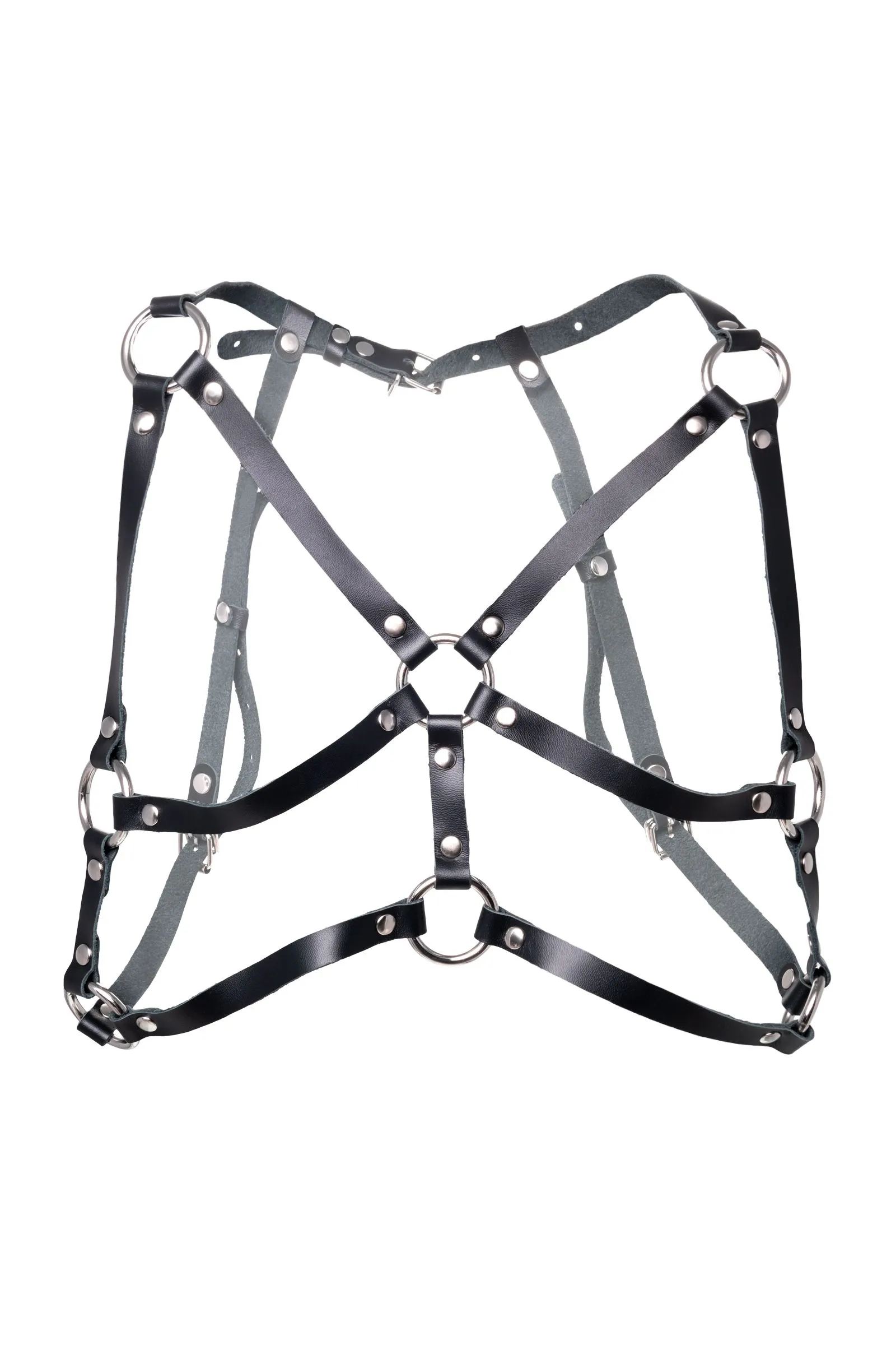 Создайте дерзкий образ для горячих игр вместе с черной портупеей от Pecado. Стильный аксессуар на зону лифа подчеркивает природную красоту женской груди. Модель отличается сдержанным, минималистическим дизайном. Тонкие кожаные ремешки соединены между собой большими стальными кольцами и декорированы заклепками. Вся металлическая фурнитура выполнена из материалов высокого качества. Портупея фиксируется сзади, в области бюста. Хорошая посадка по фигуре обеспечивается благодаря регулируемым ремешкам. Они выполнены из экологичной натуральной кожи. Сексуальный атрибут мягкий, тактильно комфортный и износостойкий. Подходит для ношения как на голое тело, так и поверх нижнего белья. ● 100% натуральная кожа. ● Ручная работа. ● Износостойкий, тактильно приятный материал ● Надежная высококачественная фурнитура. ● Элементы портупеи несъемные.