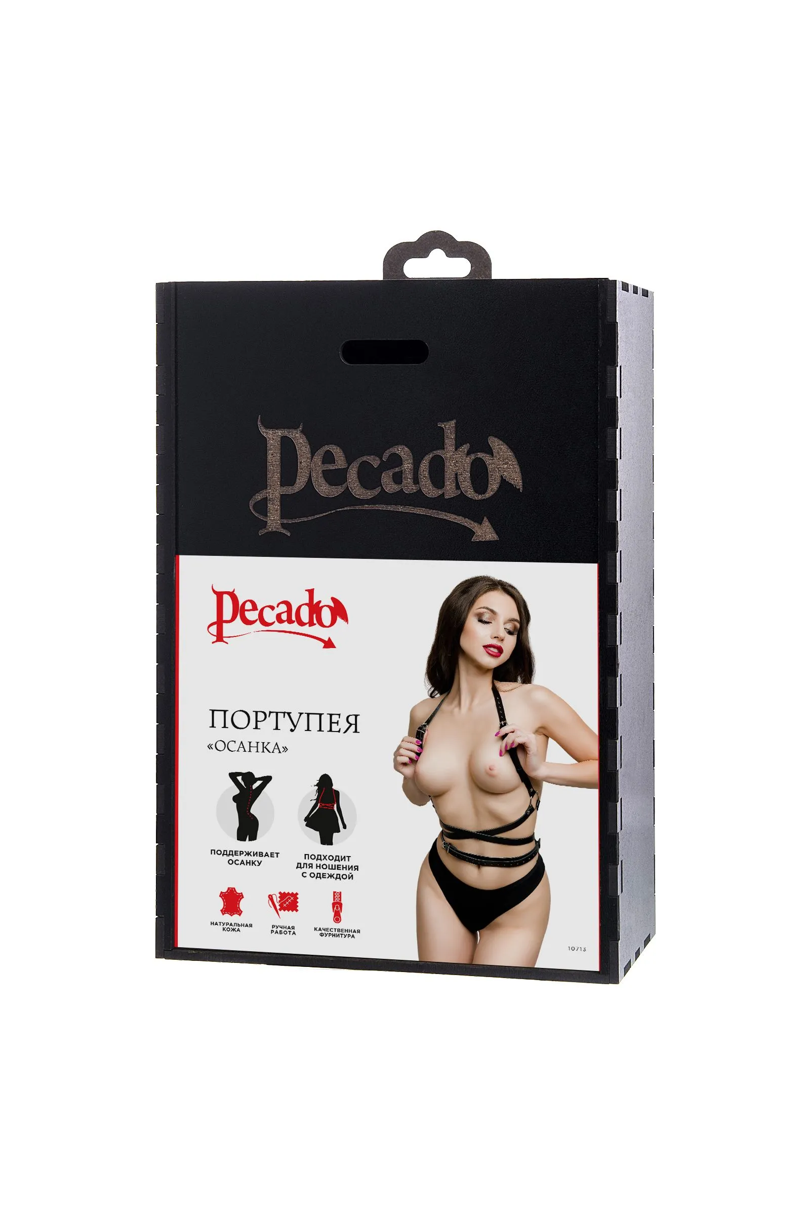 Добавьте дерзких нот в Ваш образ, с портупеей от Pecado. Она - надежный и крепкий атрибут для ролевых игр и жестких БДСМ-сессий. Аксессуар выполнен полностью из натуральной, черной кожи вручную. Материал обладает повышенной износостойкостью. Портупея тактильно приятная, плотно прилегает и комфортно сидит на теле. Каждый ремешок в меру мягкий и эластичный. Высота посадки портупеи регулируется с помощью застежки. Благодаря перекрестной обвязке на талии, аксессуар акцентирует внимание на талии и подчеркивает достоинства стана. Вся металлическая фурнитура выполнена из материалов высокого качества. Спереди, в области пояса, ремешки соединены металлическими кольцами. К ним можно присоединять и другие аксессуары. Портупею можно носить как на обнаженном теле, подчеркивая все достоинства фигуры, так и поверх нижнего белья, и одежды. Подходит для любителей сдержанного, минималистичного стиля. ● 100% натуральная кожа. ● Износостойкий, тактильно приятный материал ● Надежная высококачественная фурнитура. ● Элементы портупеи несъемные.