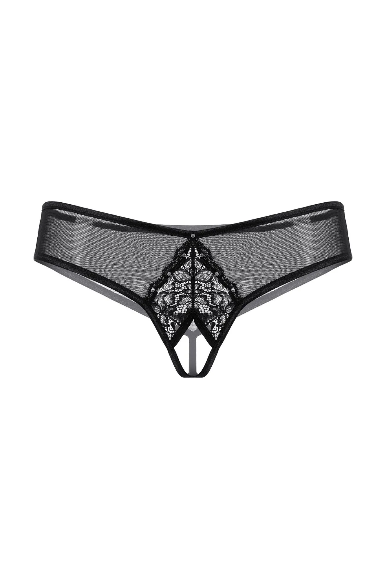 Трусики с открытым доступом. Спереди декорированы кружевной вставкой и маленькими стразами.