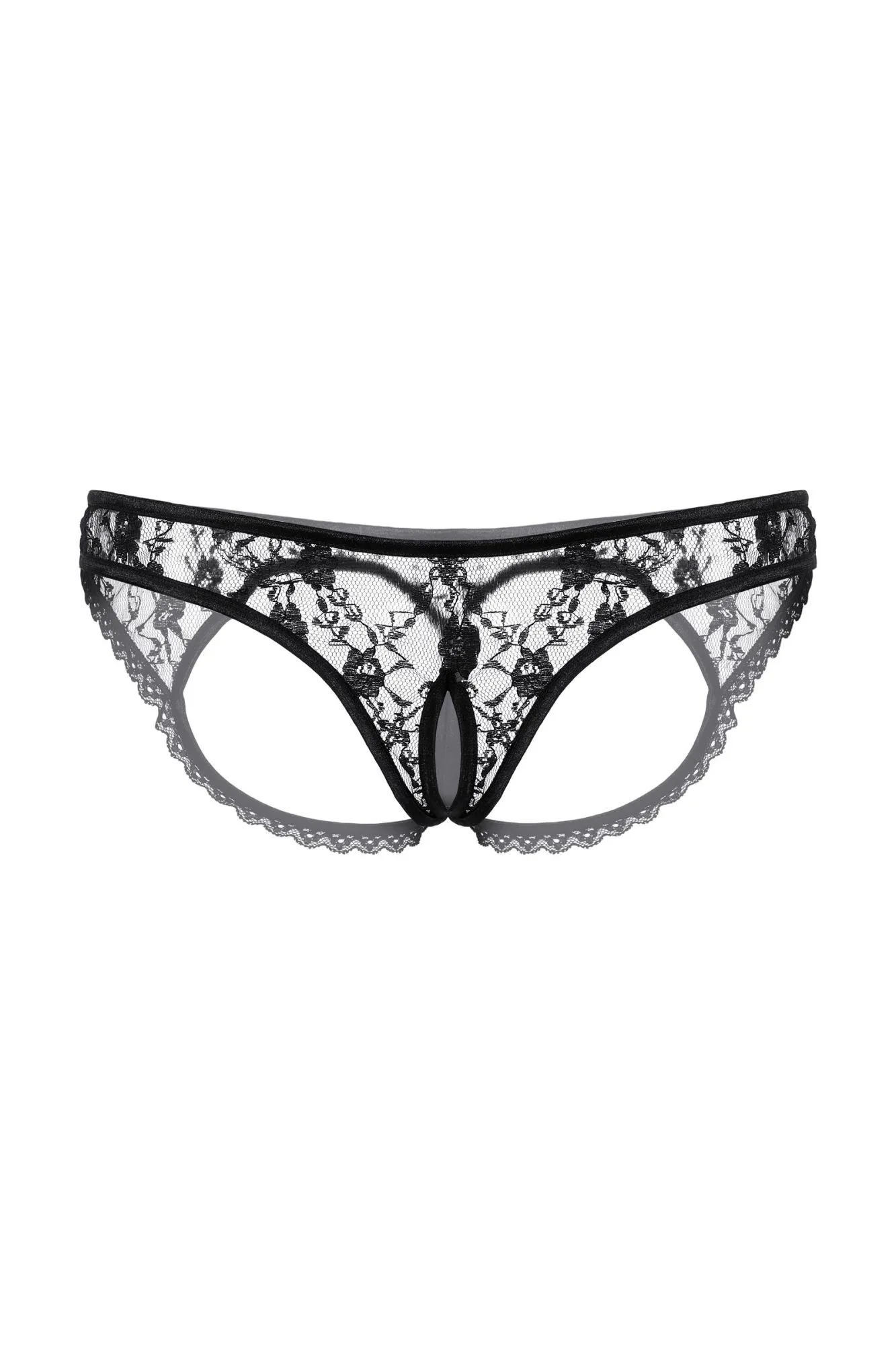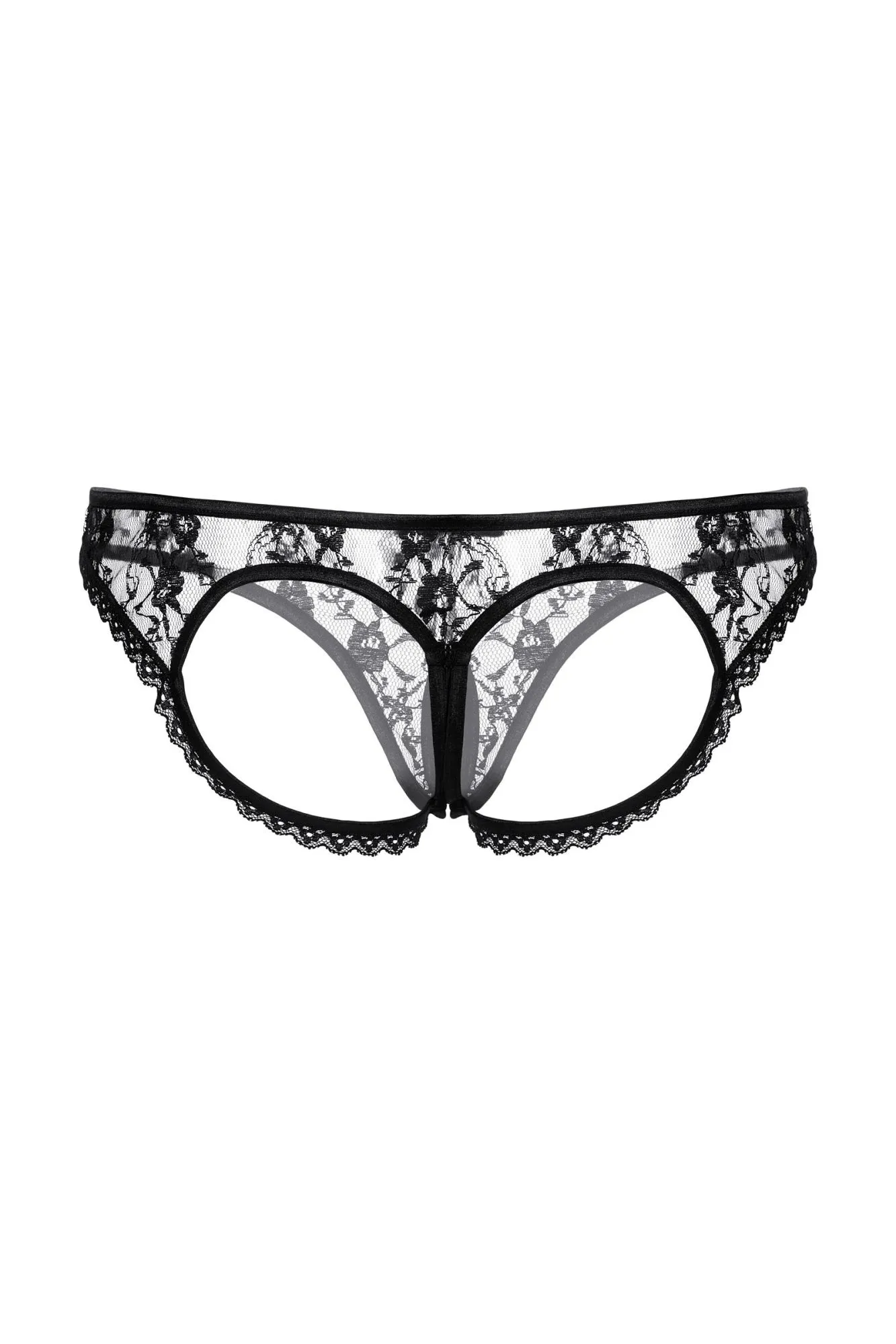 Трусики с открытыми ягодицами и вырезом черные-M/L