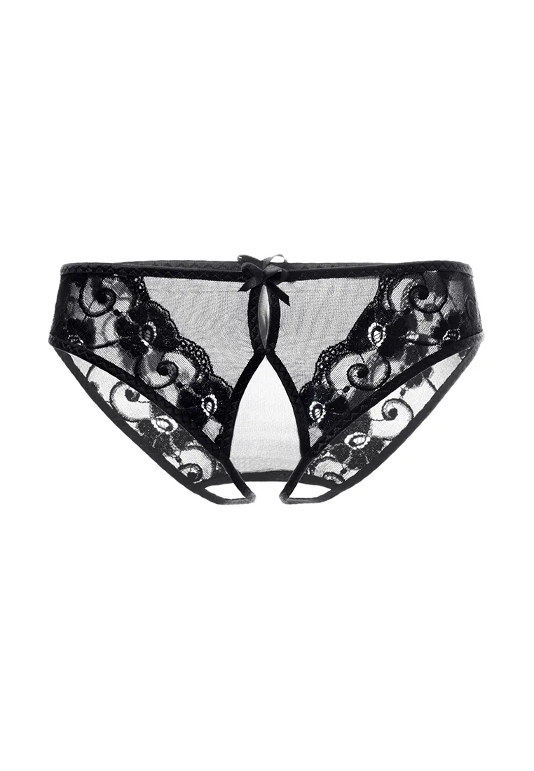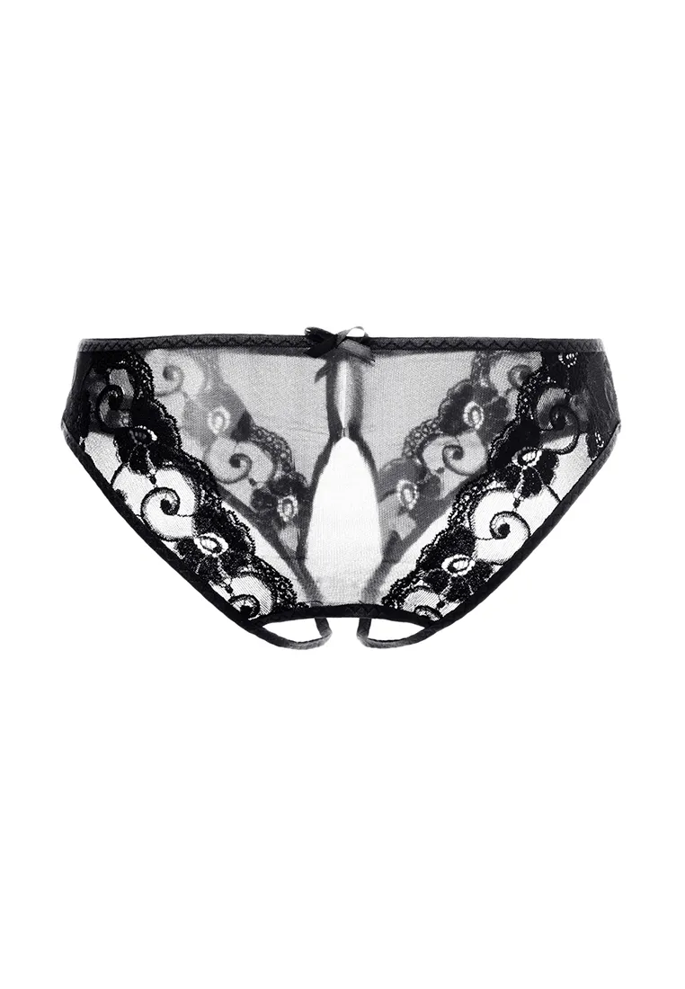 Эротические трусики Erolanta® Pauline из стрейч-сетки, эластичные, с декоративным вырезом, с кружевными вставками, с атласным бантиком спереди. *Допускается замена кружева на аналогичное. На видео трусики Erolanta® Pauline дополнены идеально сочетающимся бралеттом Erolanta® Odette.