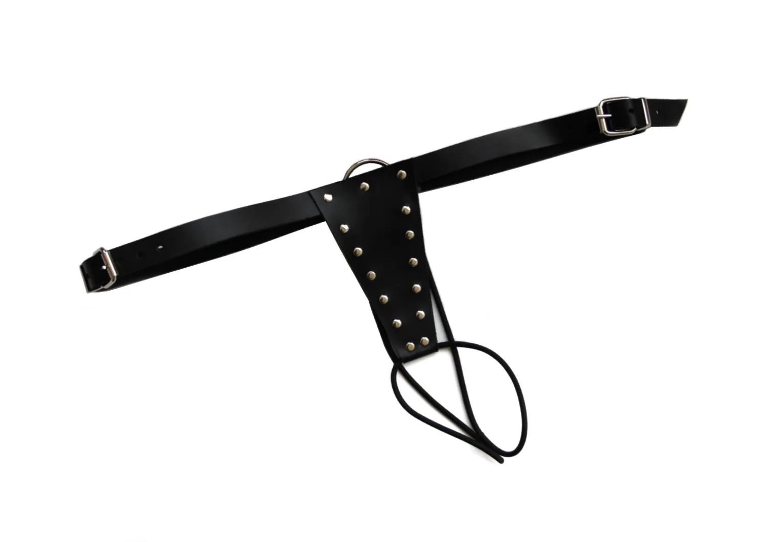 Трусы от российского бренда Pink Rabbit выполнены из натуральной кожи черного цвета. Они украшены металлическими клепками, благодаря которым они будут выглядеть еще более дерзко. Такое белье отлично подойдет тем, кто желает разнообразия в интимной жизни или же хочет добавить своему образу сексуальности и агрессивности во время игр с элементами БДСМ. Размер трусиков универсальный - их размер регулируется при помощи ремешка с пряжкой, а также длиной резинок.