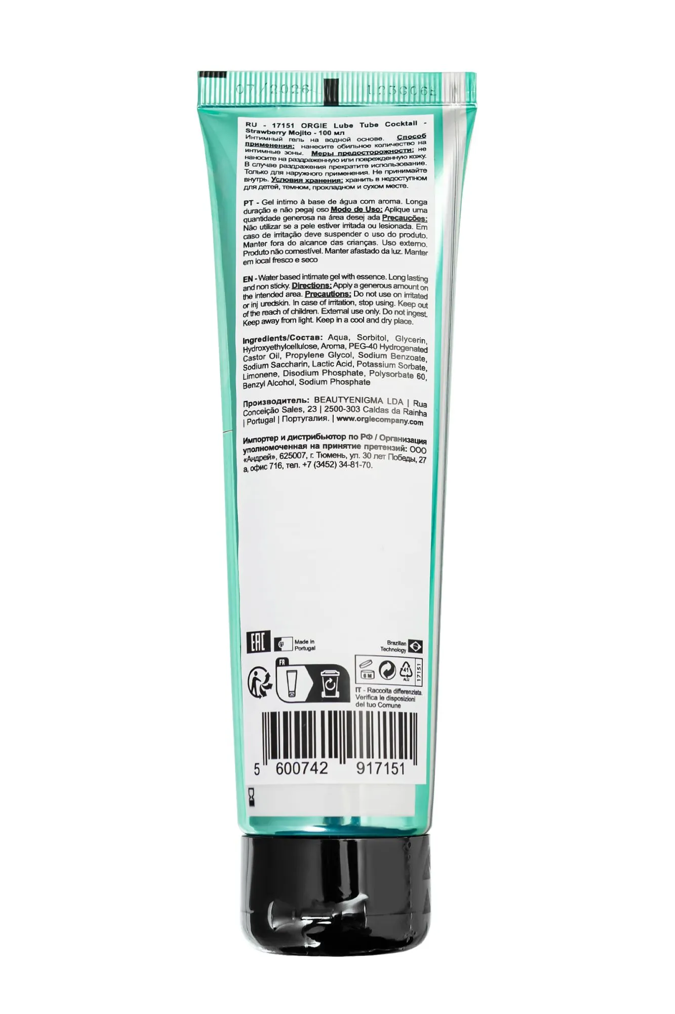—Интимный гель Orgie LUBE TUBE на водной основе, со вкусом клубничного мохито,100 мл