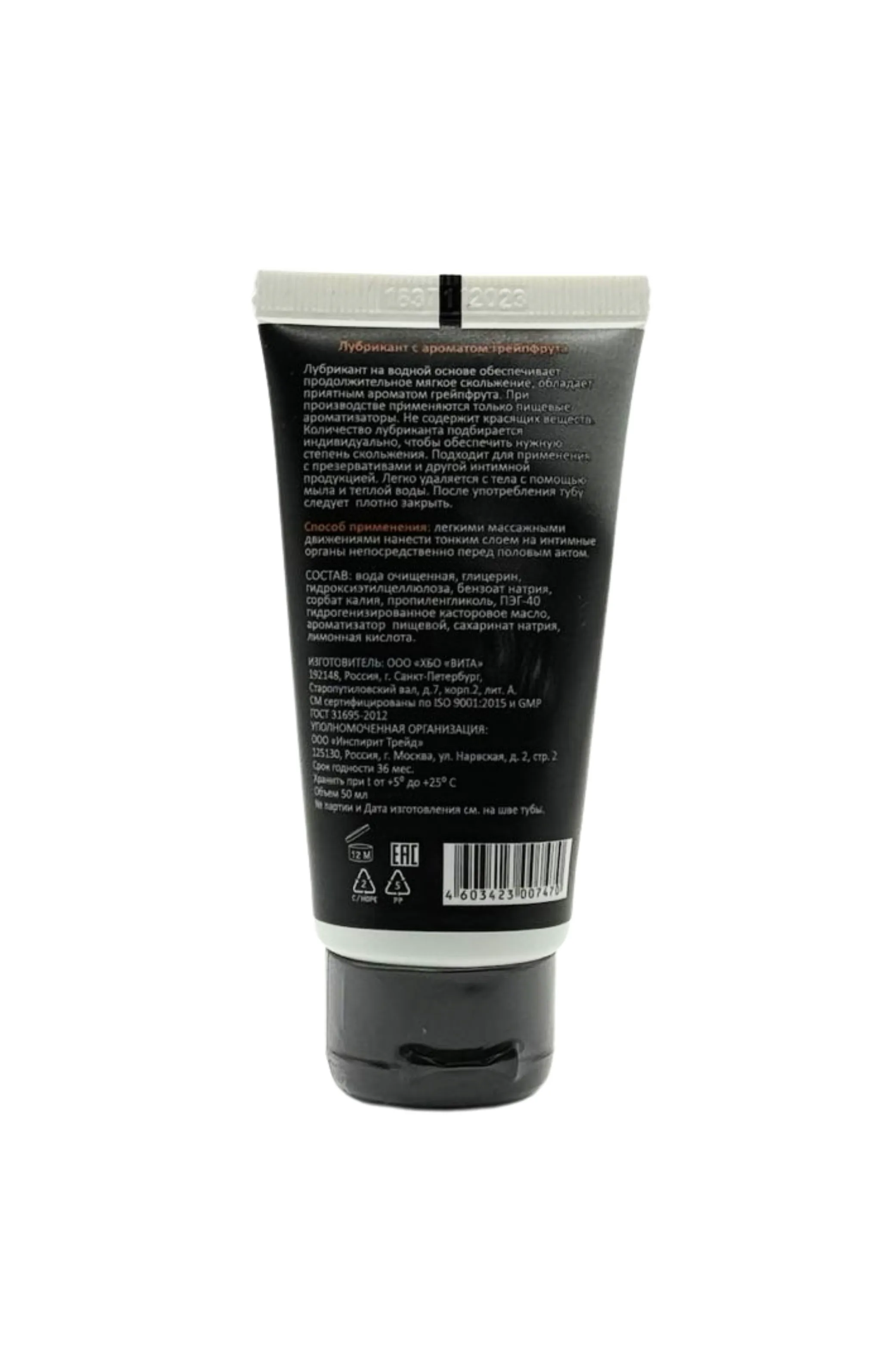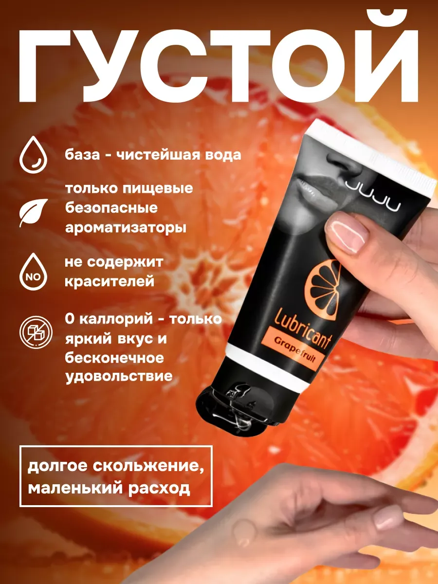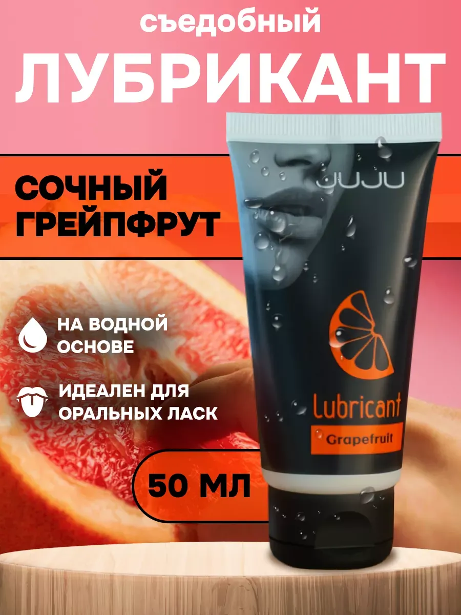 Съедобный лубрикант со вкусом грейпфрута отлично подойдет для любого вида близости. Водная основа смазки позволяет разнообразить интимную жизнь, обеспечивая продолжительное шелковистое скольжение. Лубрикант можно использовать с любыми интим игрушками, а также с презервативами. Состав: вода очищенная, глицерин, гидроксиэтилцеллюлоза, бензоат натрия, сорбат калия, пропиленгликоль, ПЭГ-40 гидрогенизированное касторовое масло, ароматизатор пищевой, сахаринат натрия, лимонная кислота, объем – 50 мл, производитель – JuJu (Россия).  срок годности-3 года.
