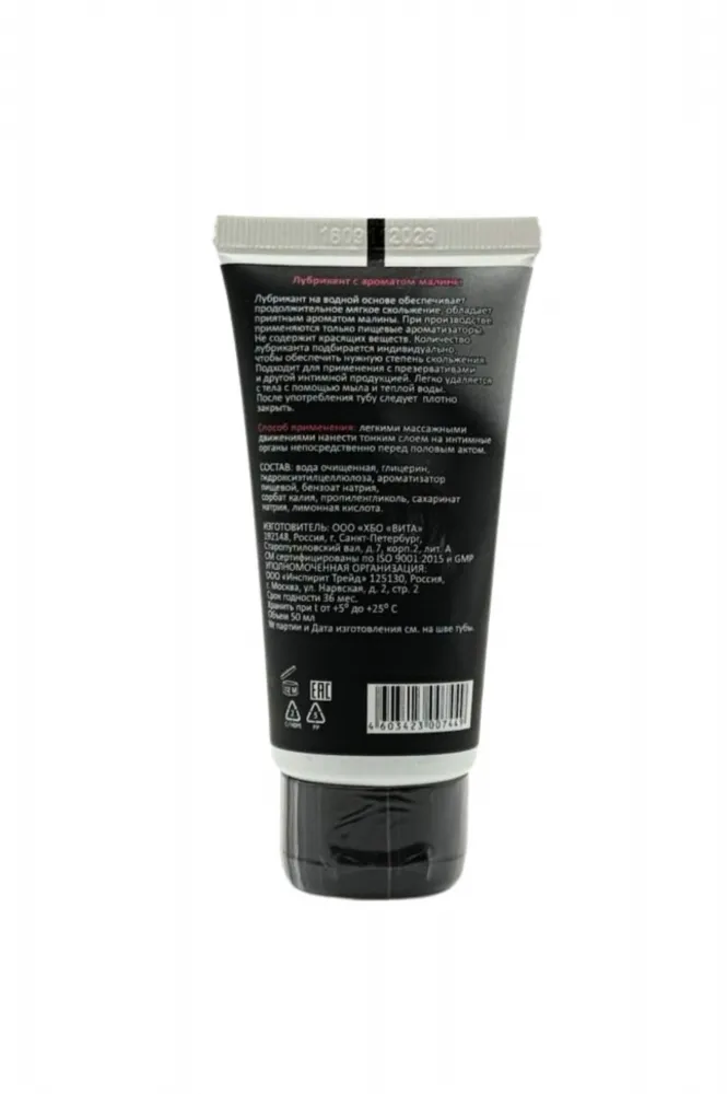 Съедобный лубрикант со вкусом малины отлично подойдет для любого вида близости. Водная основа смазки позволяет разнообразить интимную жизнь, обеспечивая продолжительное шелковистое скольжение. Лубрикант можно использовать с любыми интим игрушками, а также с презервативами. Состав: вода очищенная, глицерин, гидроксиэтилцеллюлоза, ароматизатор пищевой, бензоат натрия, сорбат калия, пропиленгликоль, сахаринат натрия, лимонная кислота, объем – 50 мл, производитель – JuJu (Россия). срок годности-3 года.